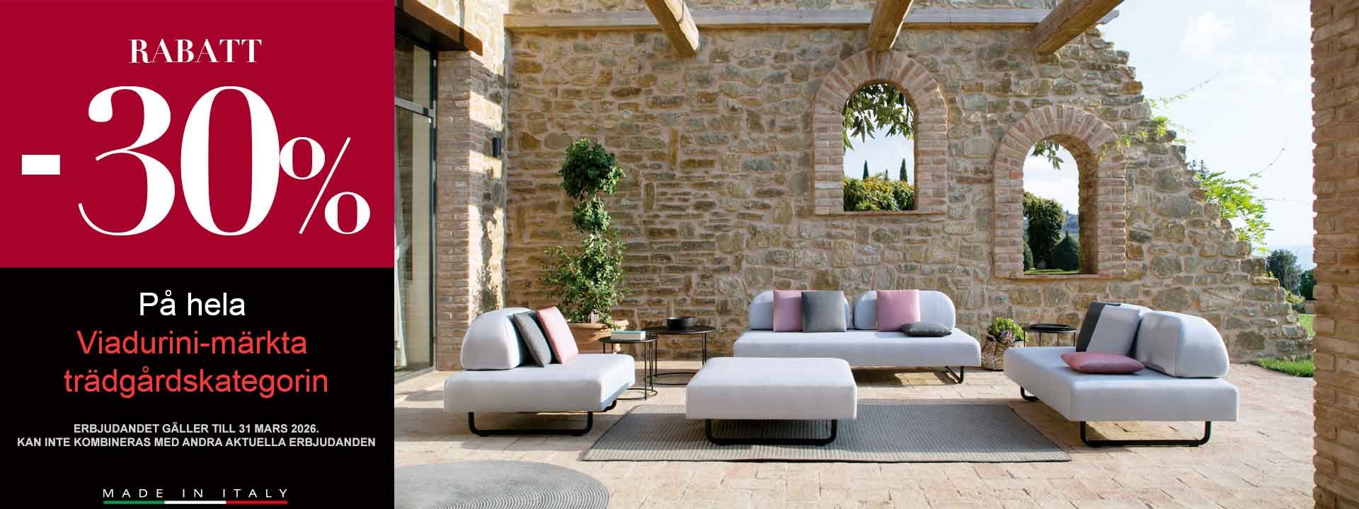 Ett utmärkt val av online-möbler och inredningstillbehör för att ge en personlig stil till dina miljöer, från vardagsrummet till köket, från badrummet till sovrummet och till trädgården och utomhus utan att glömma hela linjen dedikerad till kontoret som består av skrivbord , bokhyllor och fåtöljer . Ett brett utbud av hemmöbler, från kranar till belysning, från moderna speglar till fristående badkar, samt dubbelsängar och enkelsängar, madrasser, bord, elektriska eldstäder, designradiatorer, soffor i skandinavisk stil och mycket mer.