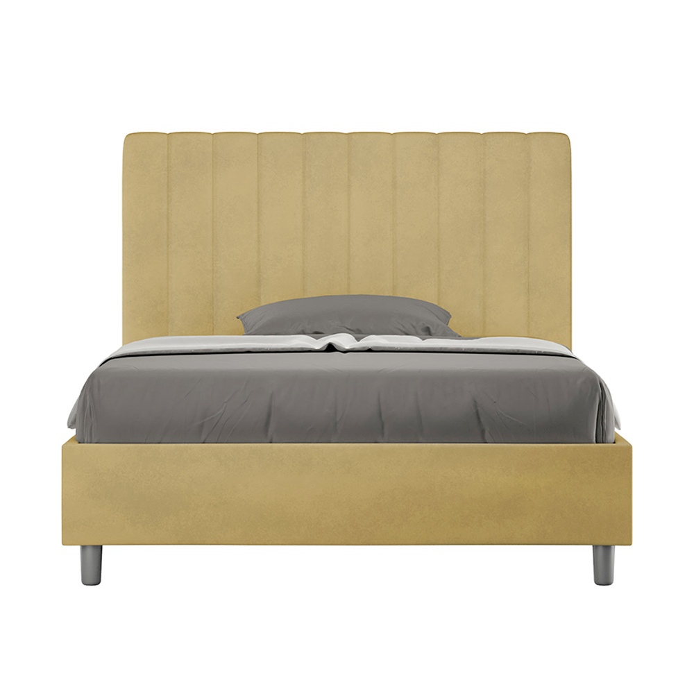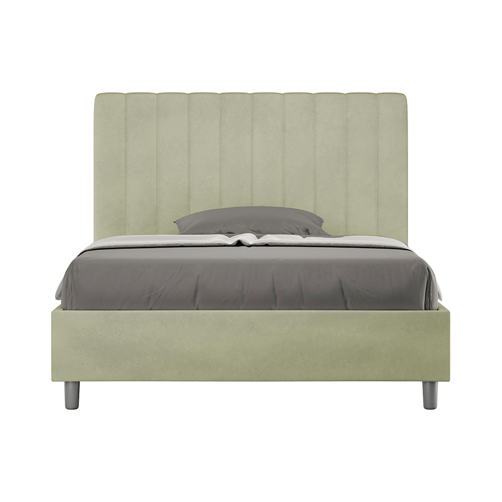 120x200 cm vadderad queen size-säng tillverkad av spånskivpaneler och klädd i mikrofiber , helt tillverkad i Italien. Denna queen size-säng med stoppad sängram är perfekt för dig som söker ett iögonfallande inslag utan att vara överdrivet påträngande. Sängen har en minimalistisk huvudgavel med en delikat quiltad effekt av symmetriska vertikala linjer , som passar vackert in i alla miljöer, oavsett om de är moderna eller klassiska.