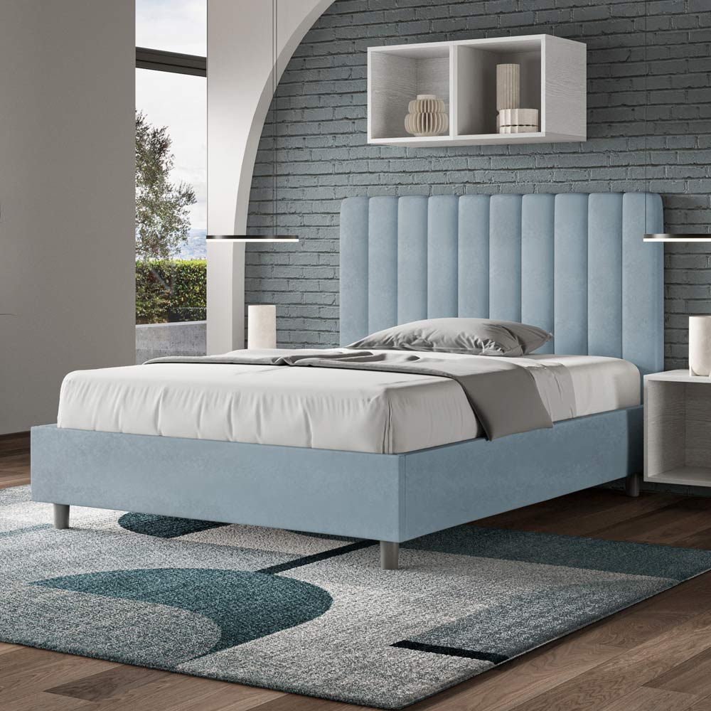 Queen size-säng 120x200 cm stoppad och klädd i mikrofiber, Tillverkad i Italien