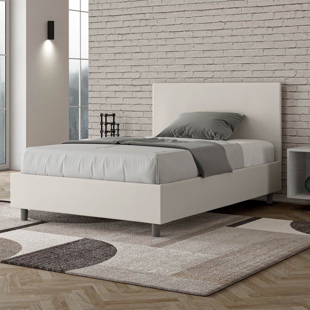 Queen size-säng, 120x200 cm, stoppad och klädd i konstläder, Tillverkad i Italien