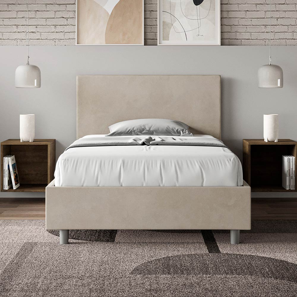 120x200 cm vadderad queen size-säng tillverkad av spånskivor och klädd i mikrofiber , helt tillverkad i Italien. Denna queen size-säng har en vadderad sängram och är en ikon för diskret men elegant stil. Med en huvudgavel i mikrofiber smälter sängen sömlöst in i alla utrymmen och ger en distinkt touch av klass och lyx, typiskt italienskt. Underhållet är enkelt: torka bara av med en mikrofiberduk för att bevara dess skönhet över tid.
