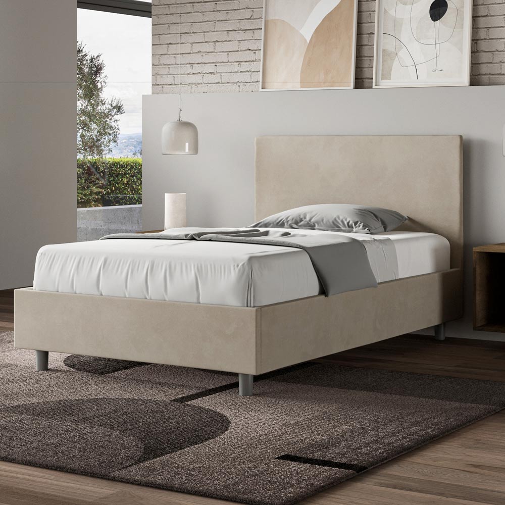 Queen size-säng 120x200 cm stoppad och klädd i mikrofiber, Tillverkad i Italien