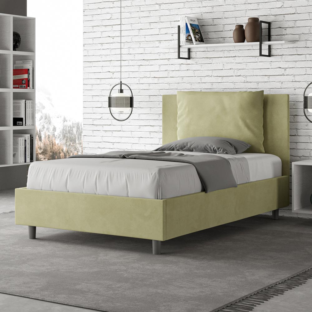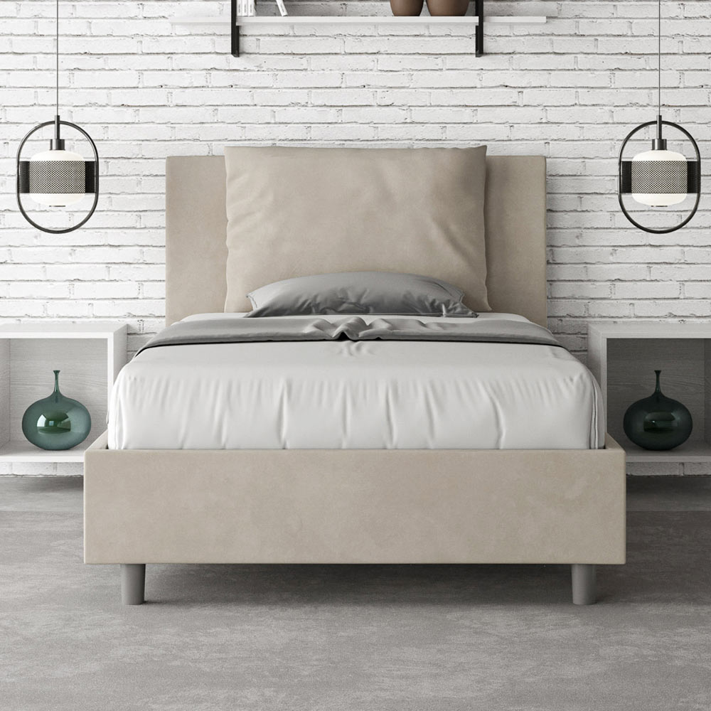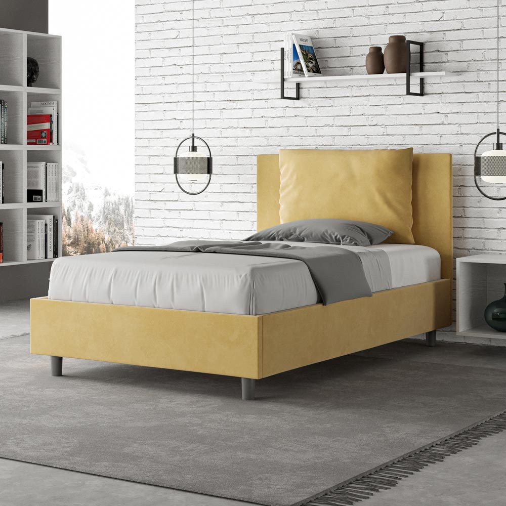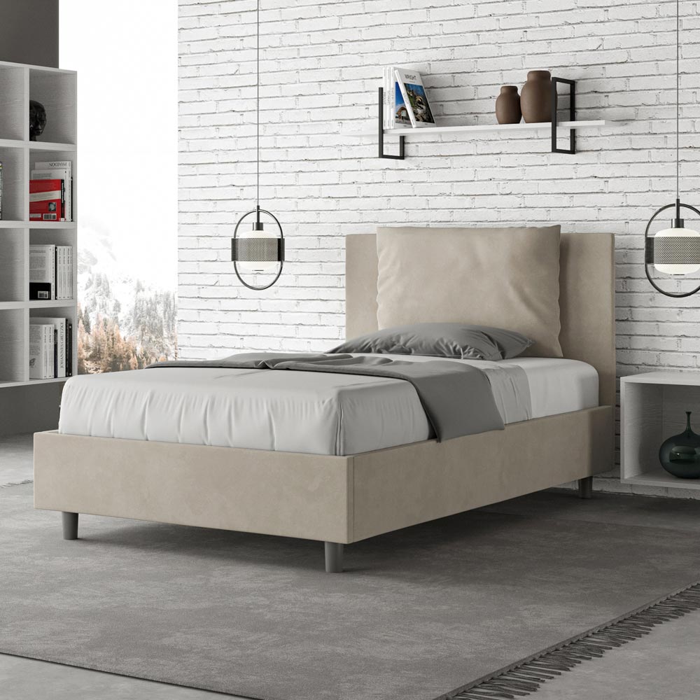 120x200 cm vadderad queen size-säng tillverkad av spånskivpaneler och klädd i mikrofiber , helt tillverkad i Italien. Denna queen size-säng med klädd sängram förkroppsligar perfekt fördelarna med en klädd säng: komfort, modern stil, funktionalitet och effektiv användning av utrymmet . Denna säng, med sin breda vadderade huvudgavel , erbjuder en avkopplande hörna som är perfekt för att läsa eller titta på TV, vilket förbättrar ditt sovrum. Elegant och snygg, denna säng är klädd i mikrofiber, vilket gör rengöringen snabb och enkel: torka bara av den med en mikrofiberduk för att hålla den skinande fin.
