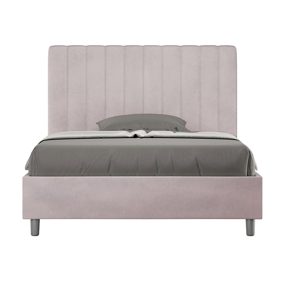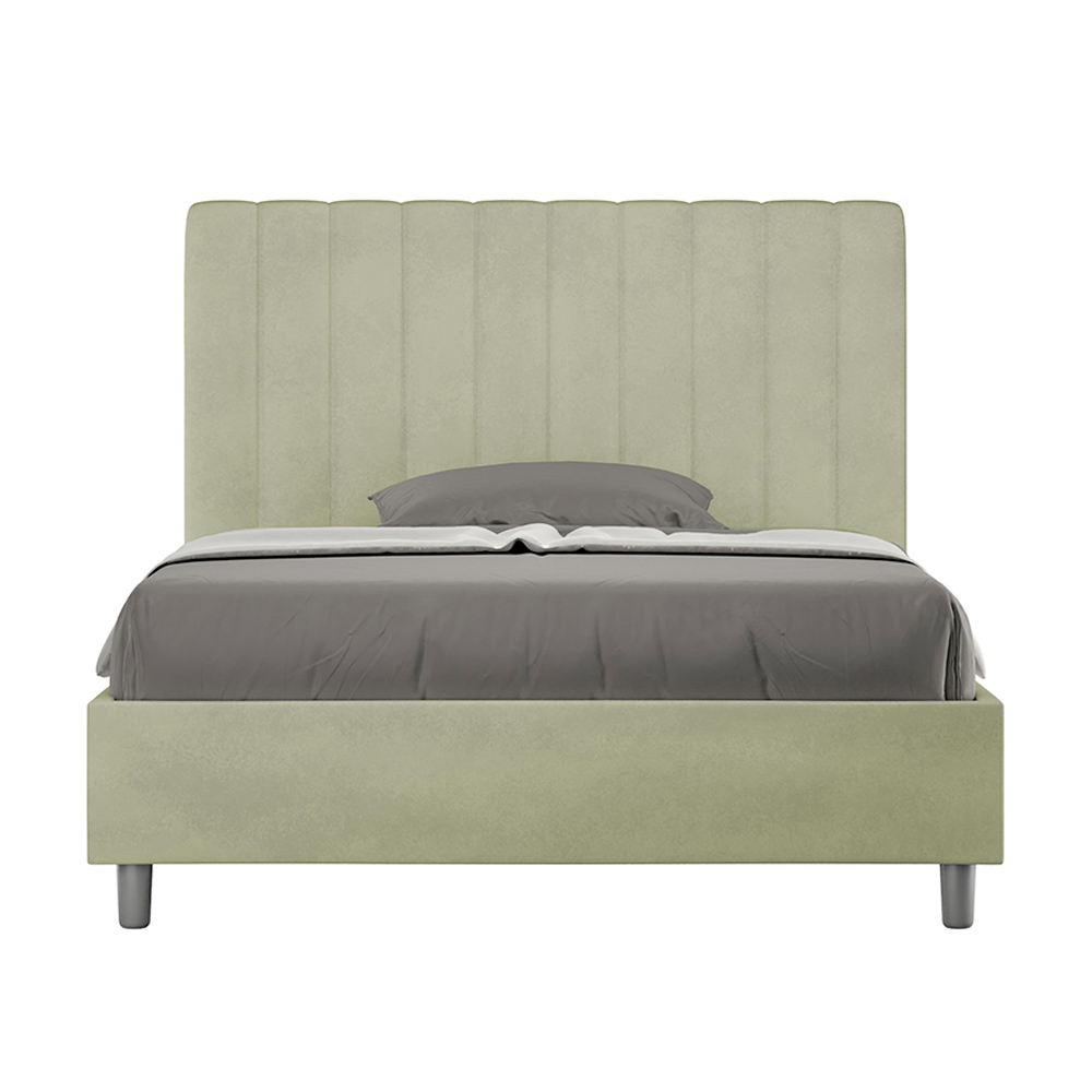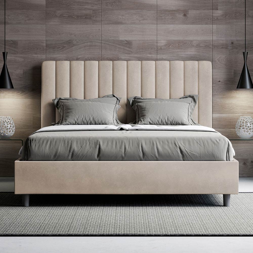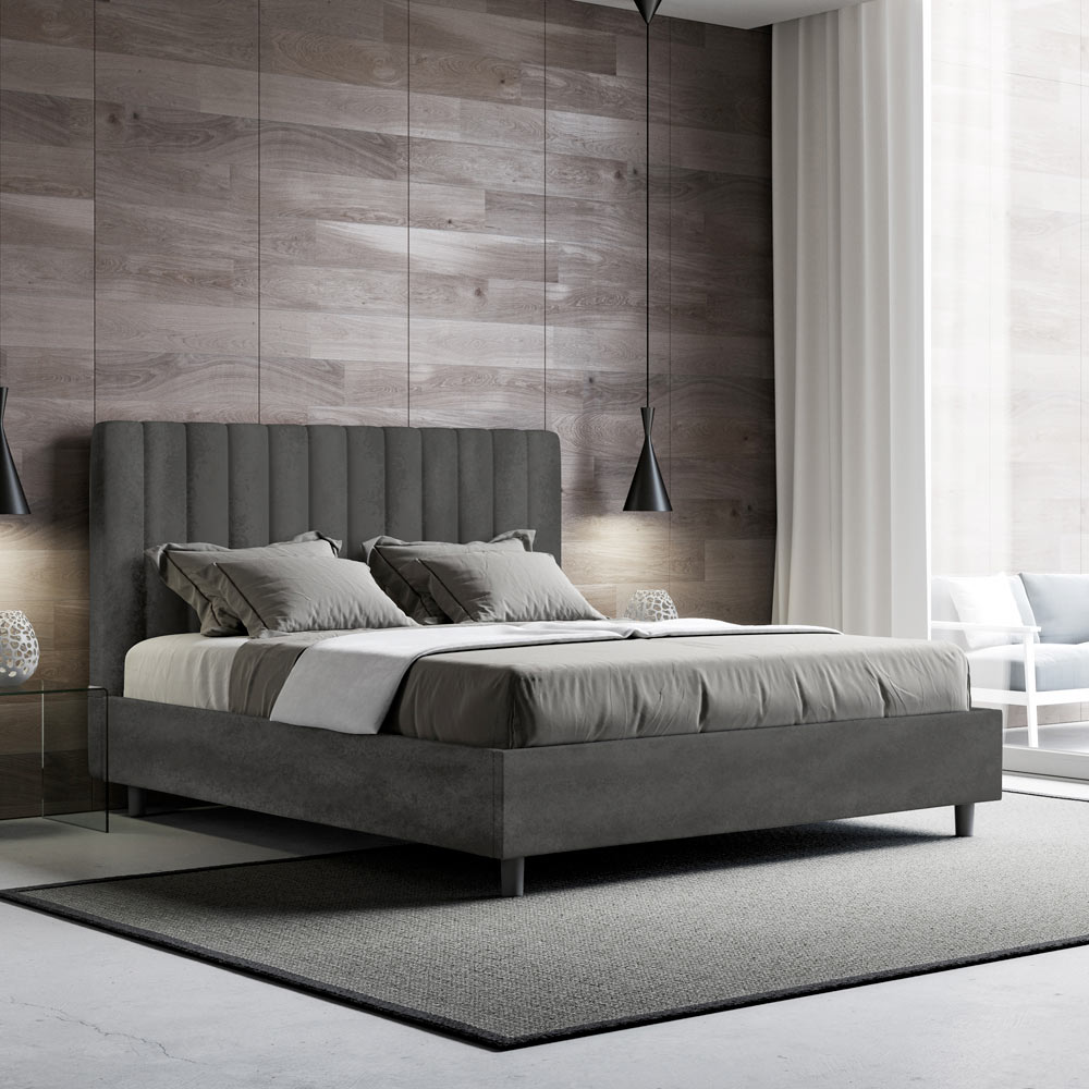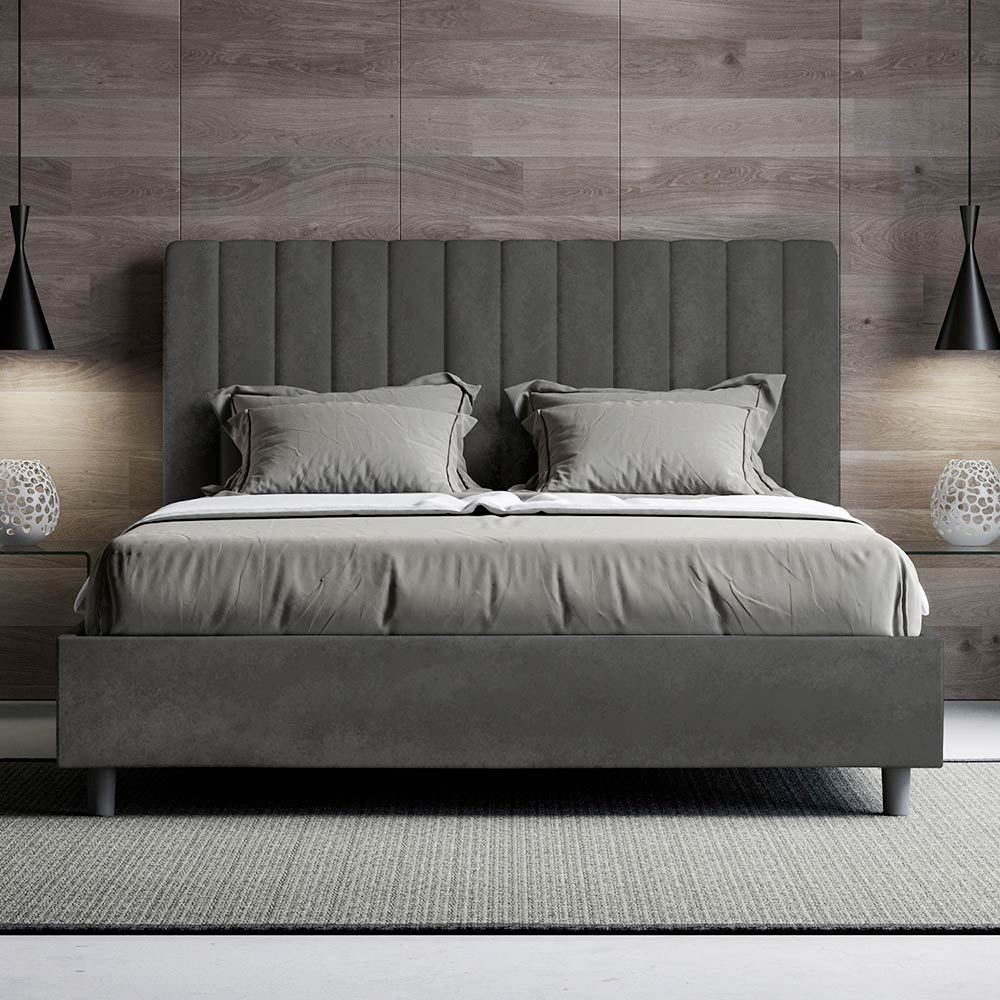 Fransk säng 140x200 cm stoppad i melaminpaneler och klädd i mikrofiber , helt tillverkad i Italien. Denna franska säng med klädd sängram är perfekt för dig som söker ett iögonfallande inslag utan att vara överdrivet påträngande. Sängen har en minimalistisk huvudgavel med en delikat quiltad effekt av symmetriska vertikala linjer , som passar vackert in i alla miljöer, oavsett om de är moderna eller klassiska.