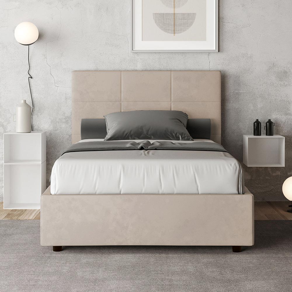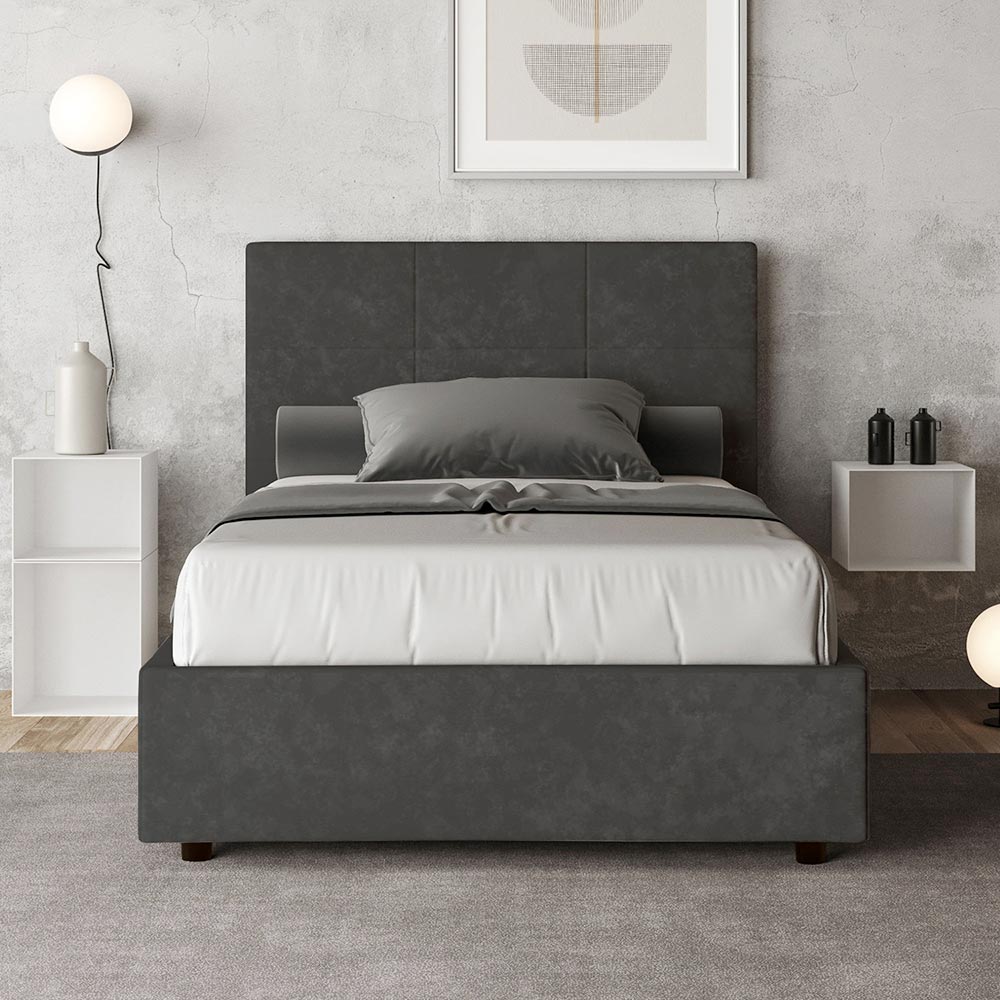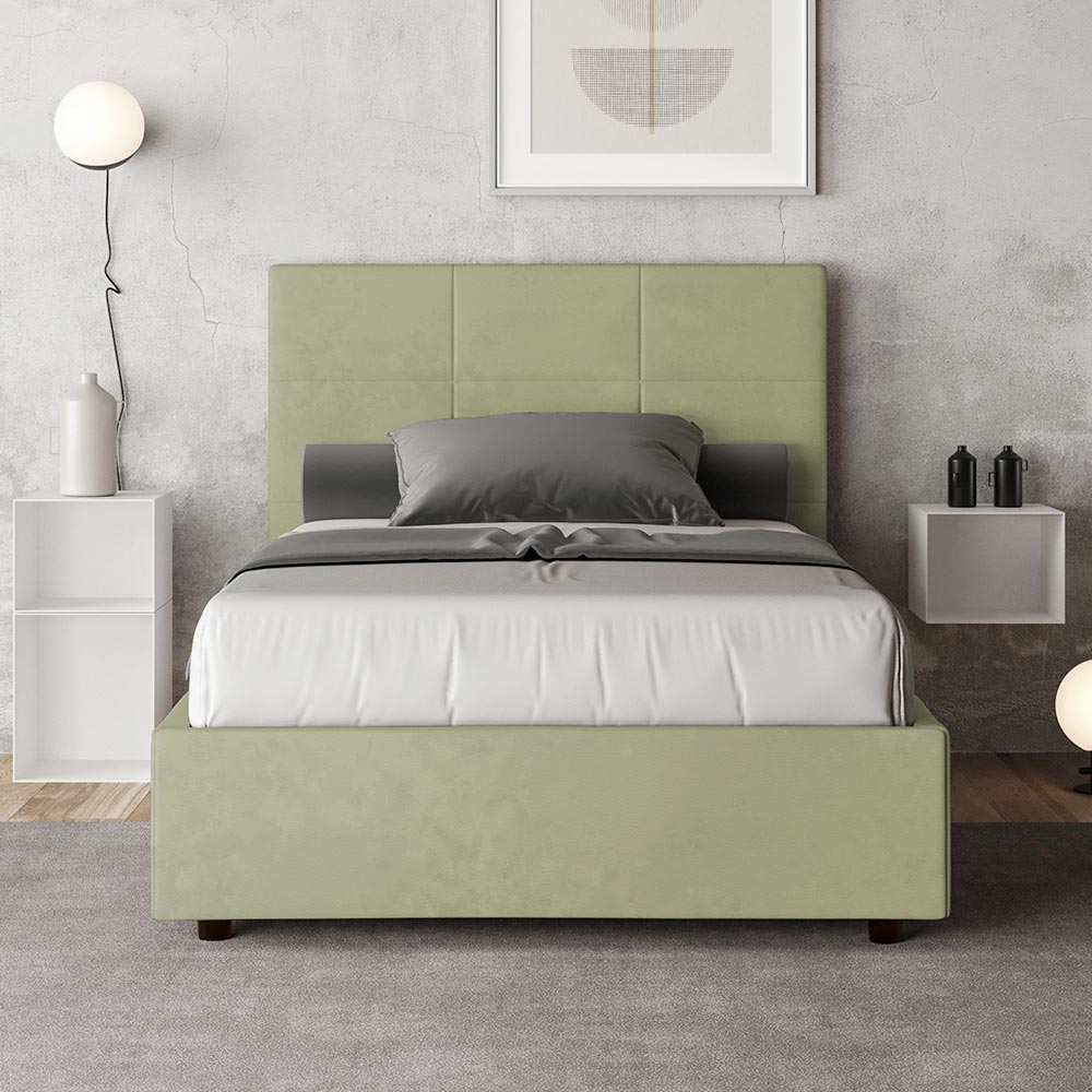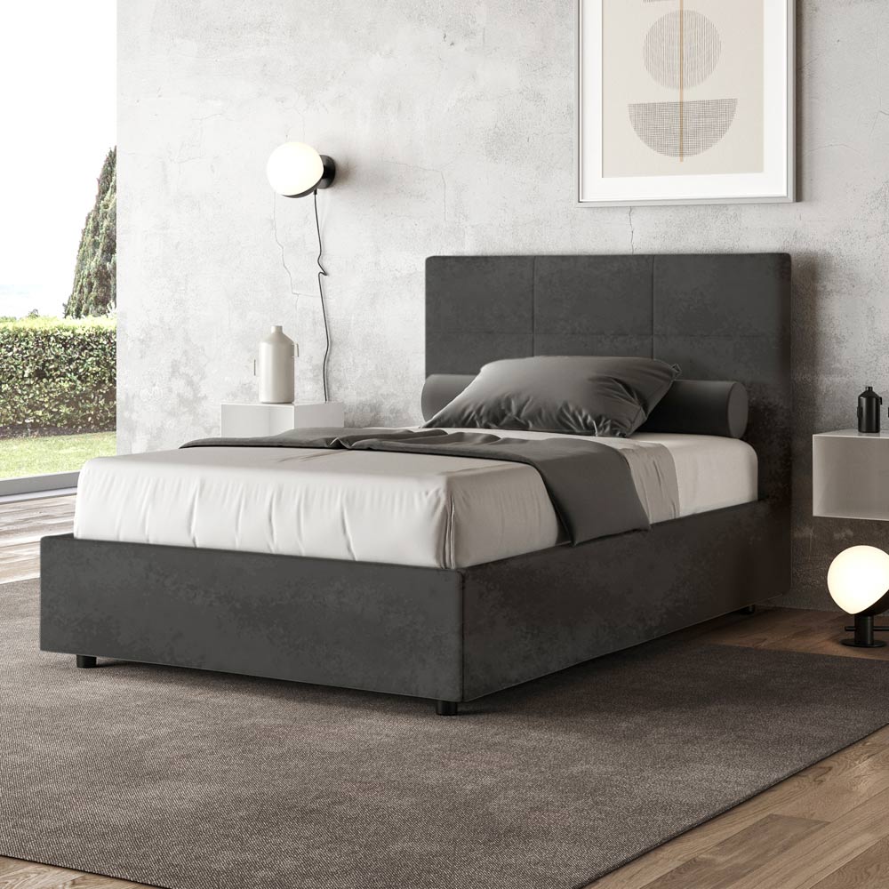 Fransk säng 140x200 cm vadderad och klädd i mikrofiber, Tillverkad i Italien