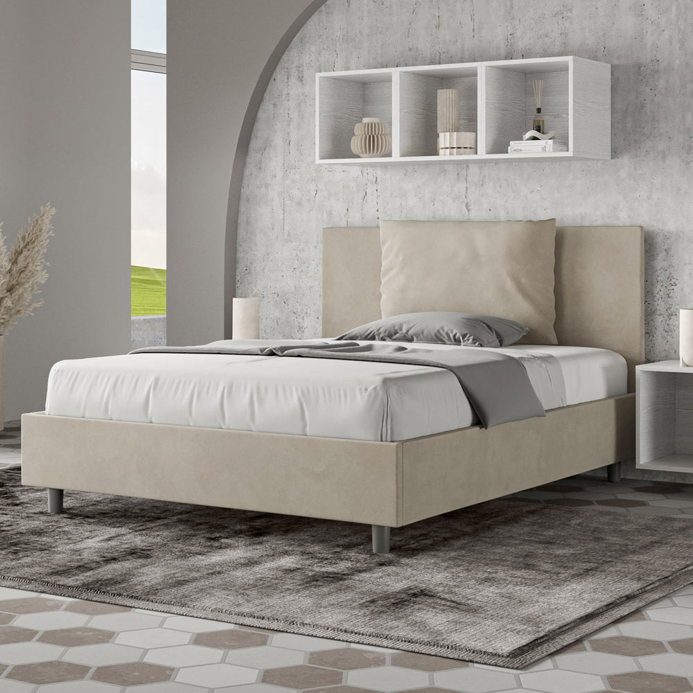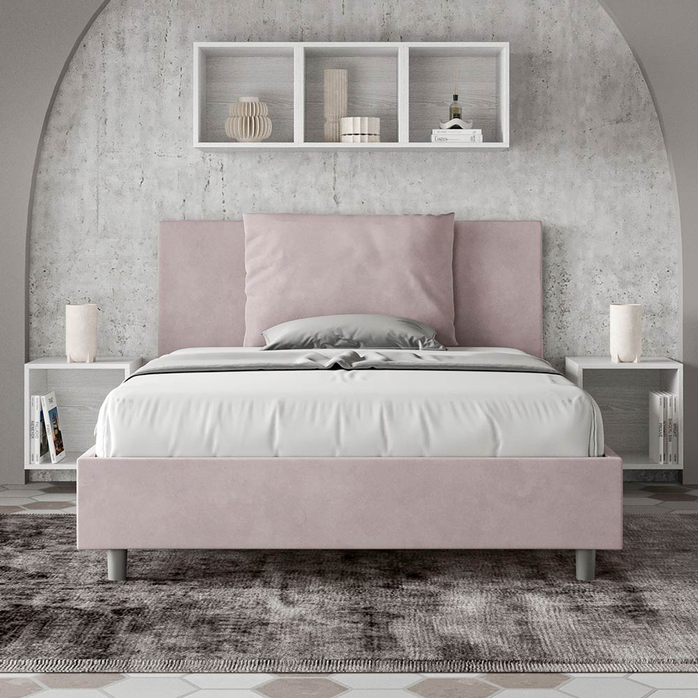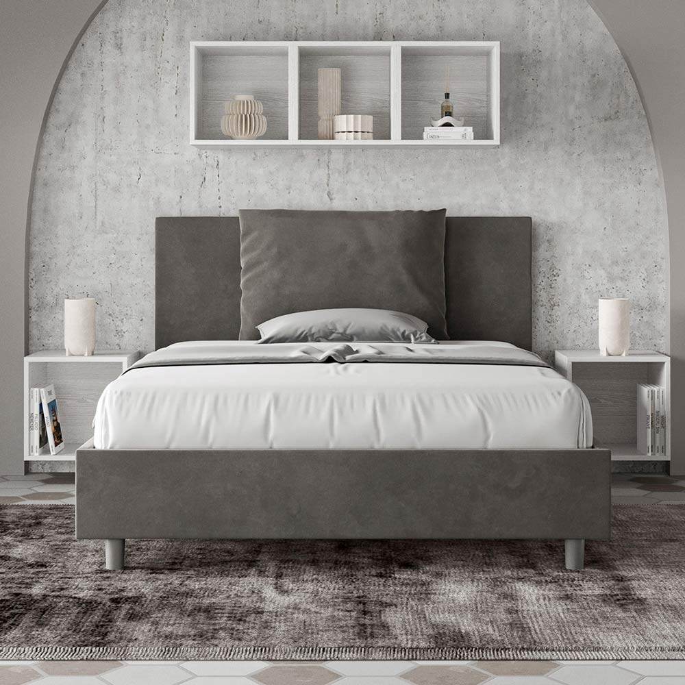 Fransk säng 140x200 cm stoppad i melaminpaneler och klädd i mikrofiber , helt tillverkad i Italien. Denna franska säng med klädd ram förkroppsligar perfekt fördelarna med en klädd säng: komfort, modern stil, funktionalitet och effektiv användning av utrymmet . Denna säng, med sin breda vadderade huvudgavel , erbjuder en avkopplande hörna som är perfekt för att läsa eller titta på TV, vilket förbättrar ditt sovrum. Elegant och snygg, denna säng är klädd i mikrofiber, vilket gör rengöringen snabb och enkel: torka bara av den med en mikrofiberduk för att hålla den skinande fin.