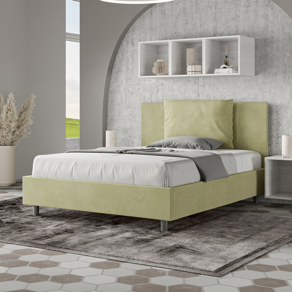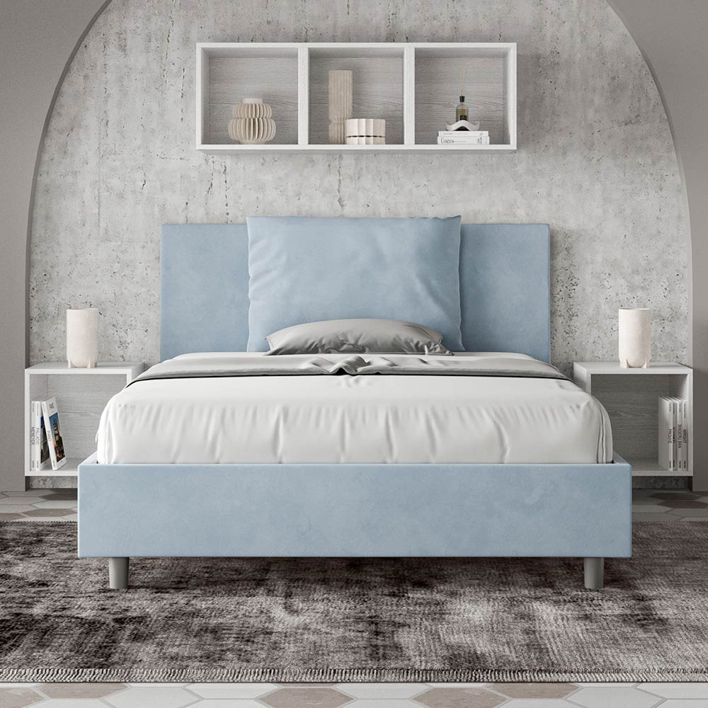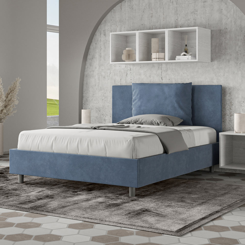 Fransk säng 140x200 cm vadderad och klädd i mikrofiber, Tillverkad i Italien