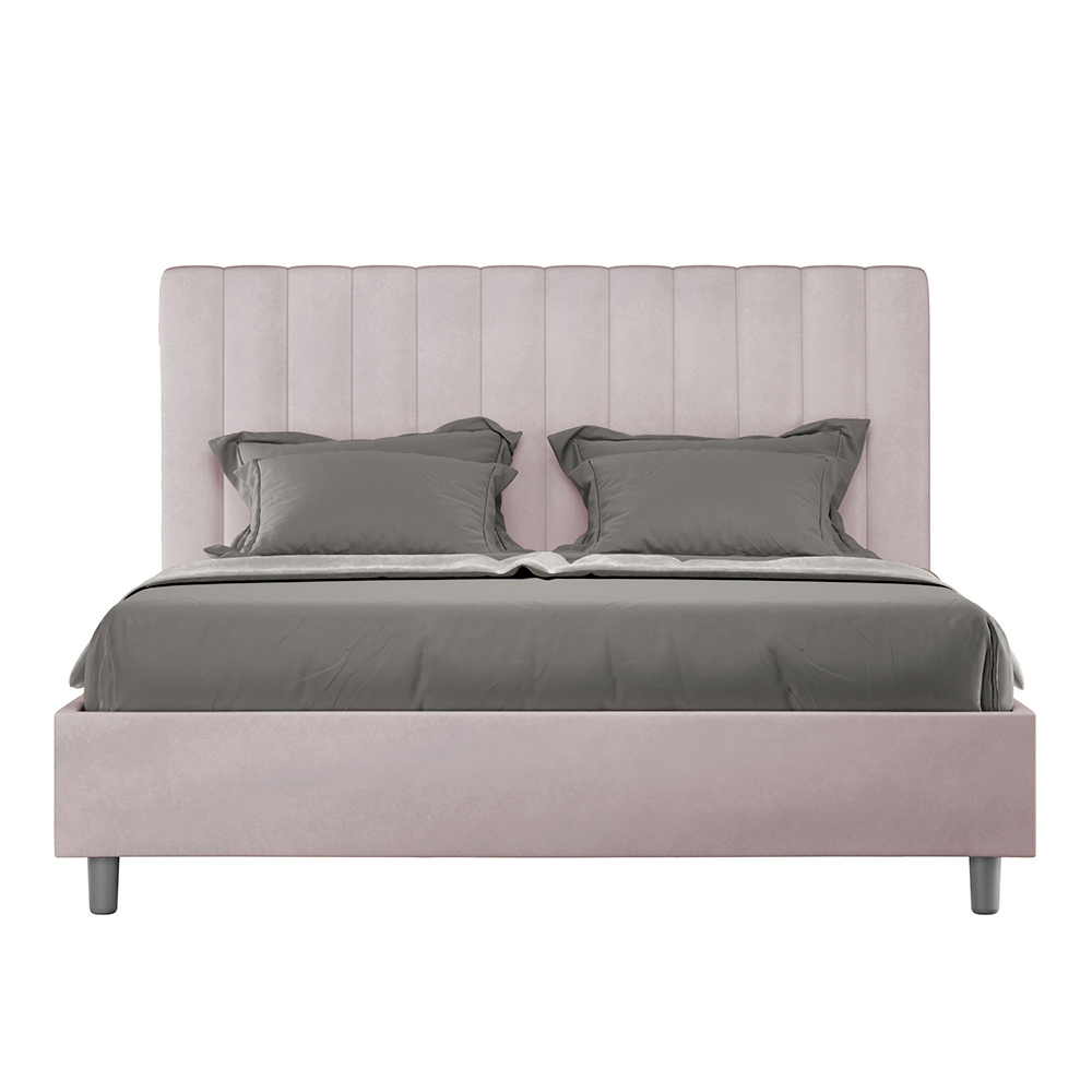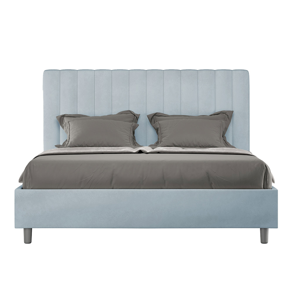 160x200 cm dubbelsäng stoppad och klädd i mikrofiber, Tillverkad i Italien