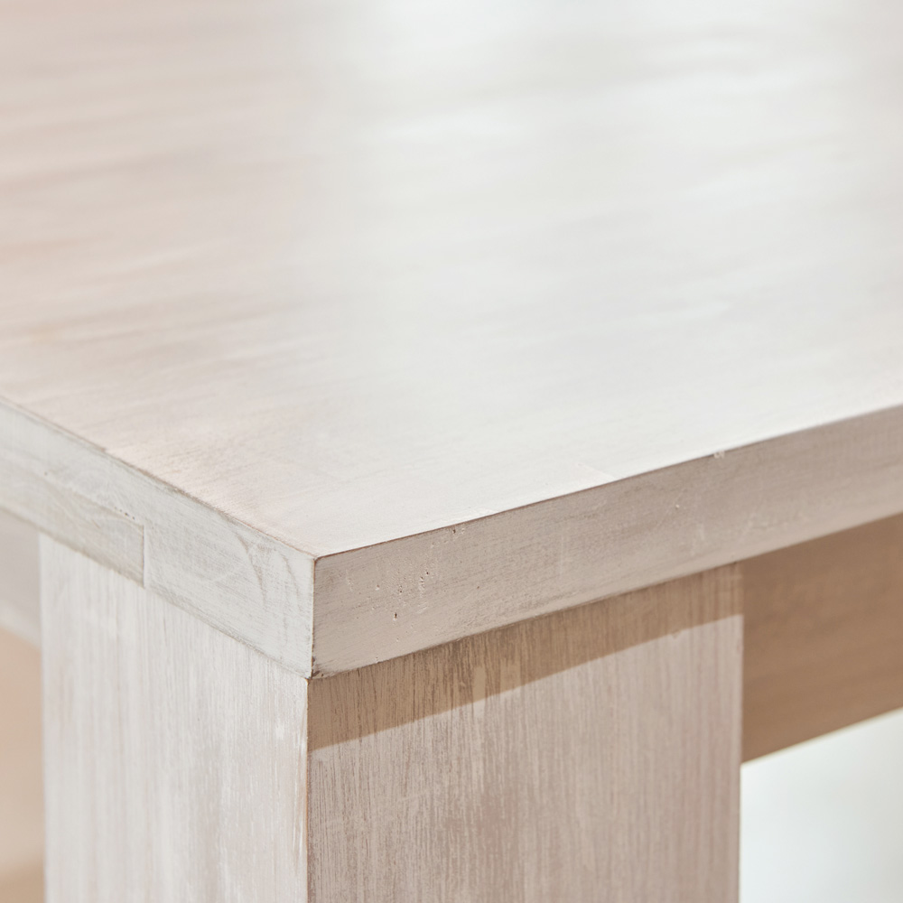Bordet är handgjort av naturligt torkat trä, ett levande material som kan genomgå naturliga rörelser över tid. Eventuella små sprickor eller hakar är inneboende i träet och kan uppstå även med tiden.