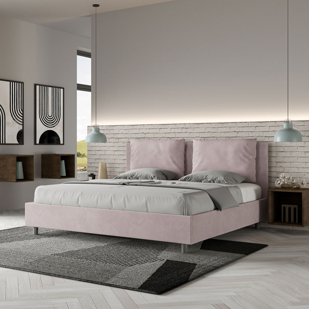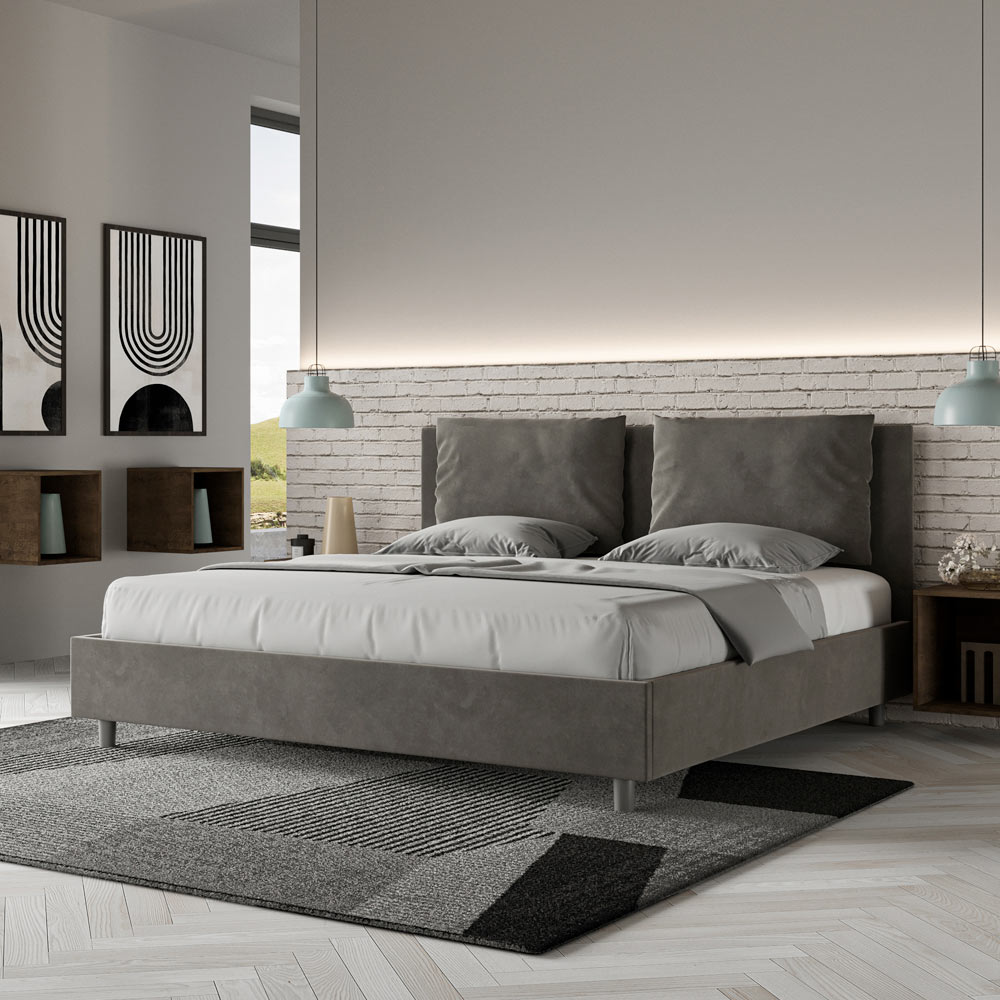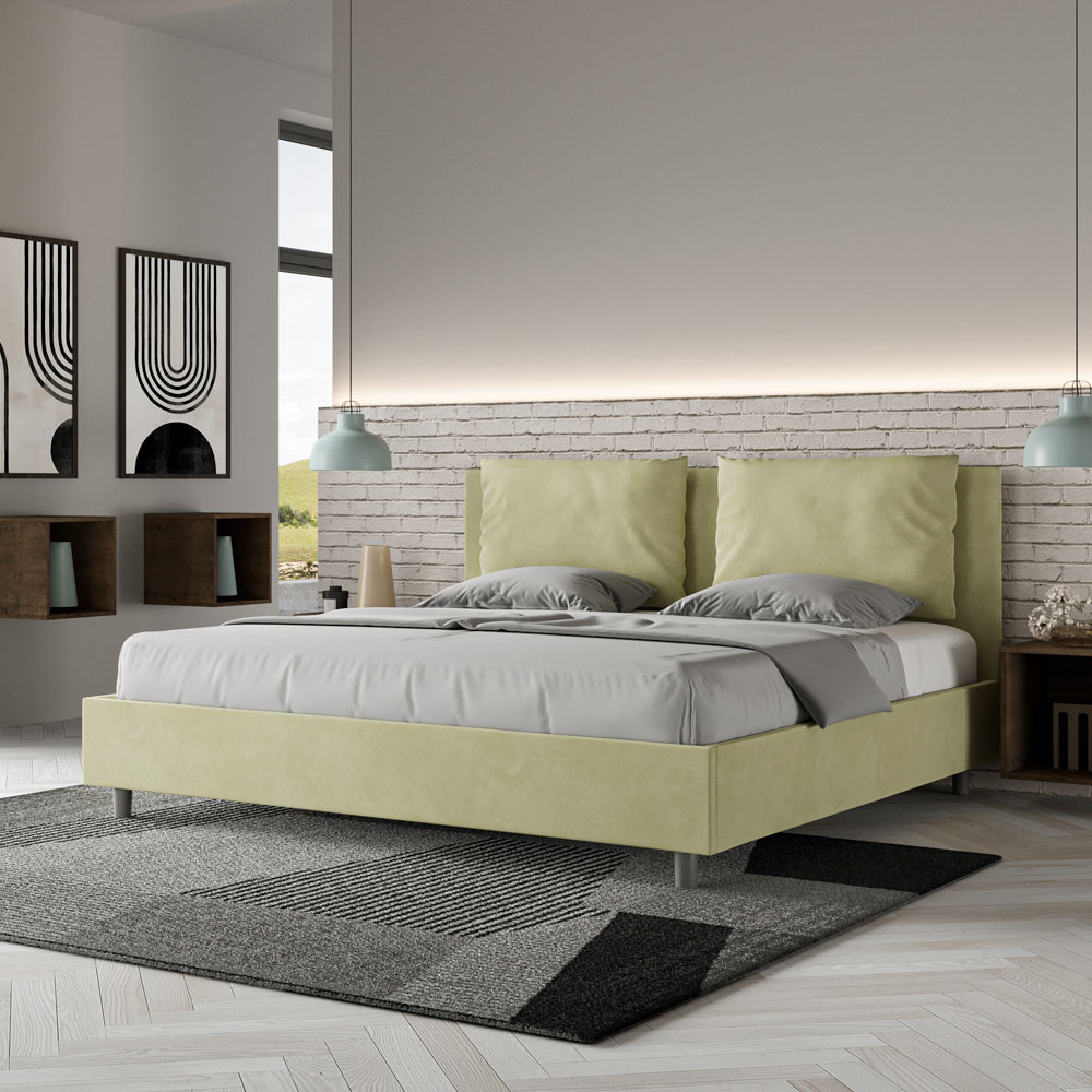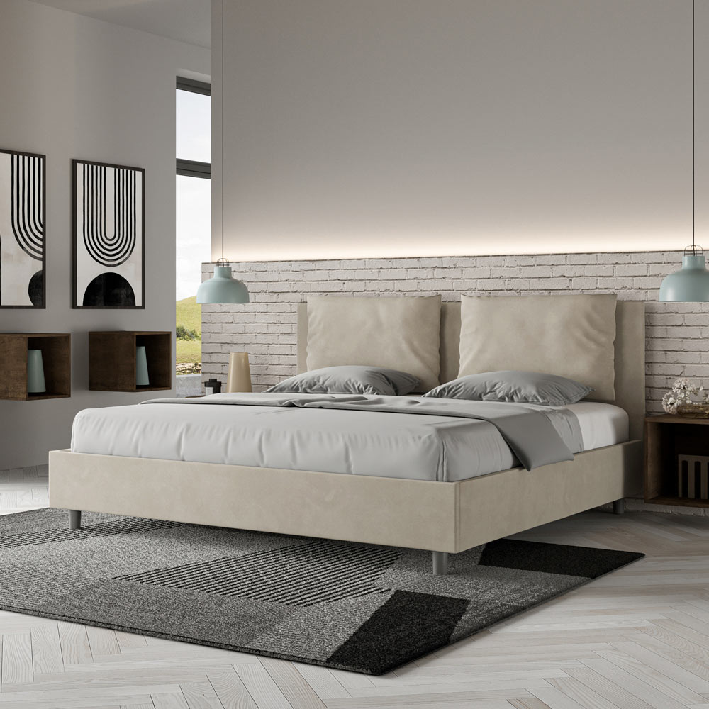 King size-säng 190x200 cm vadderad och klädd i mikrofiber, Tillverkad i Italien