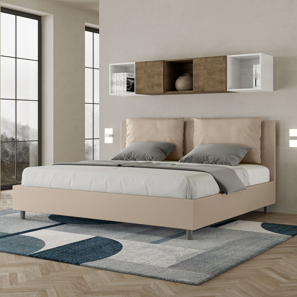 Super king size-säng 200x200 cm stoppad och klädd i konstläder, Tillverkad i Italien