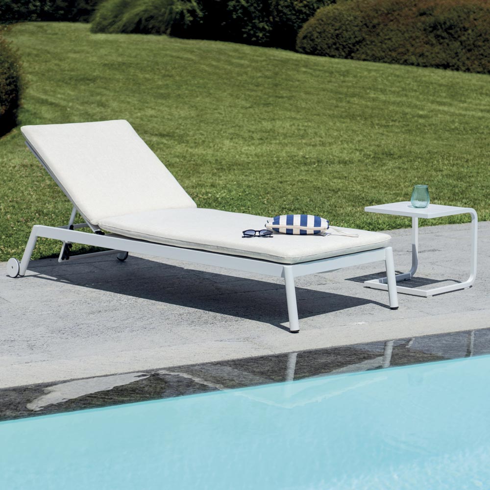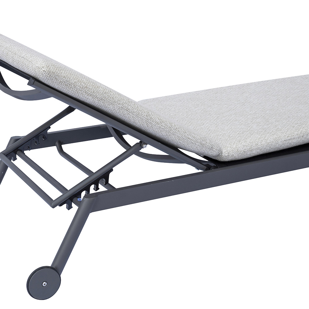 Med en minimalistisk och raffinerad design anpassar sig denna solsäng perfekt till alla inredningsstilar och ger en touch av elegans och komfort till alla utomhusutrymmen.