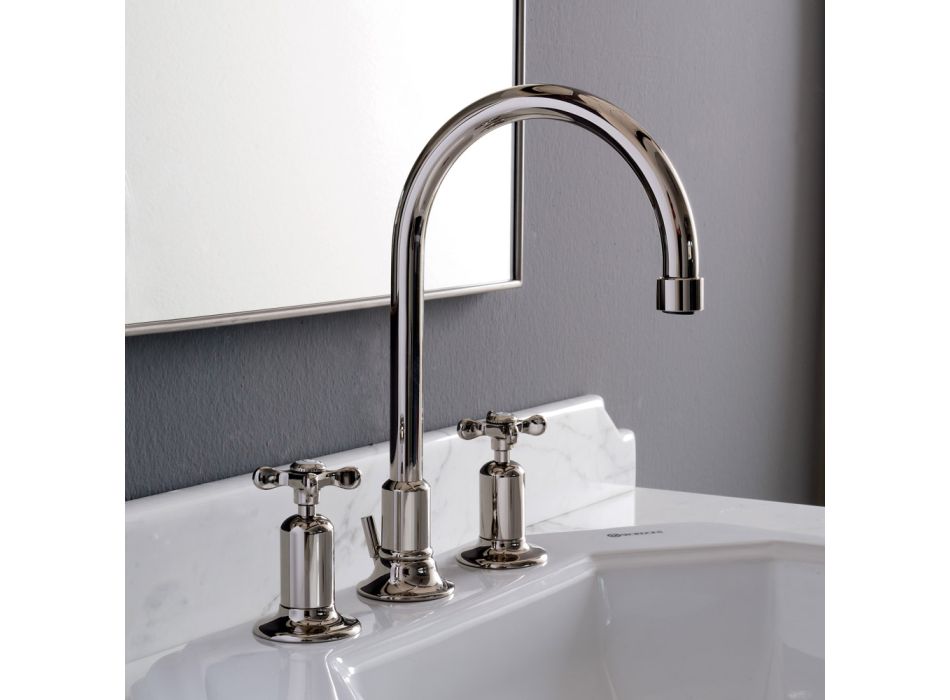 Denna utsökta blandare3-håls hög pip ochmed avlopp è helt handgjord av erfarna hantverkare i branschen av tung mässing, gjuten i formar som respekterar det förflutnas hantverkssystem och skyddad med en tjock toppbeläggning i nickel.