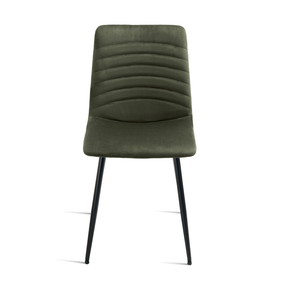 En elegant uppsättning av fyra stoppade stolar med modern design, perfekt för att elegant inreda din matsal , vardagsrum eller sällskapsrum. Den ribbade tygklädseln ger en rik och behaglig textur som framhäver sitsen med ett raffinerat, texturerat utseende.