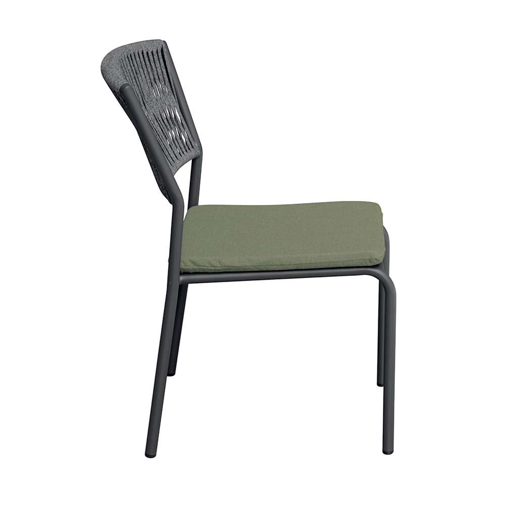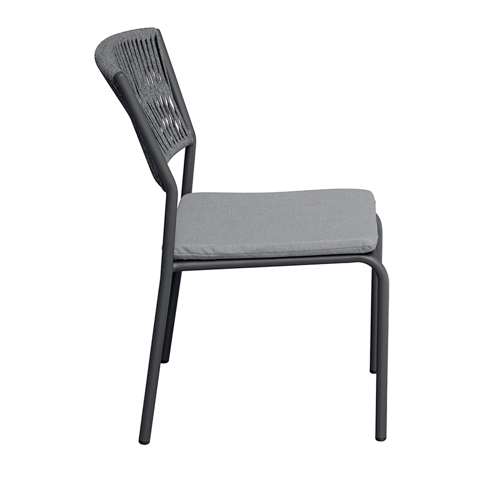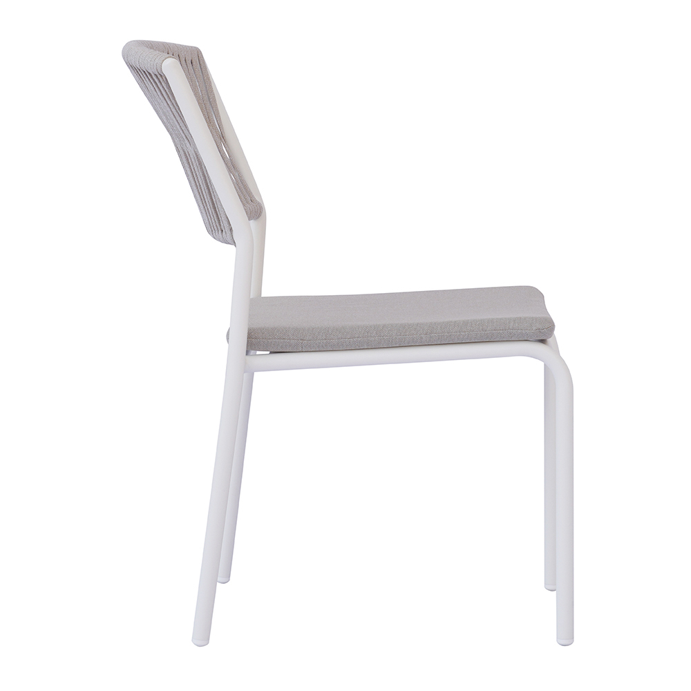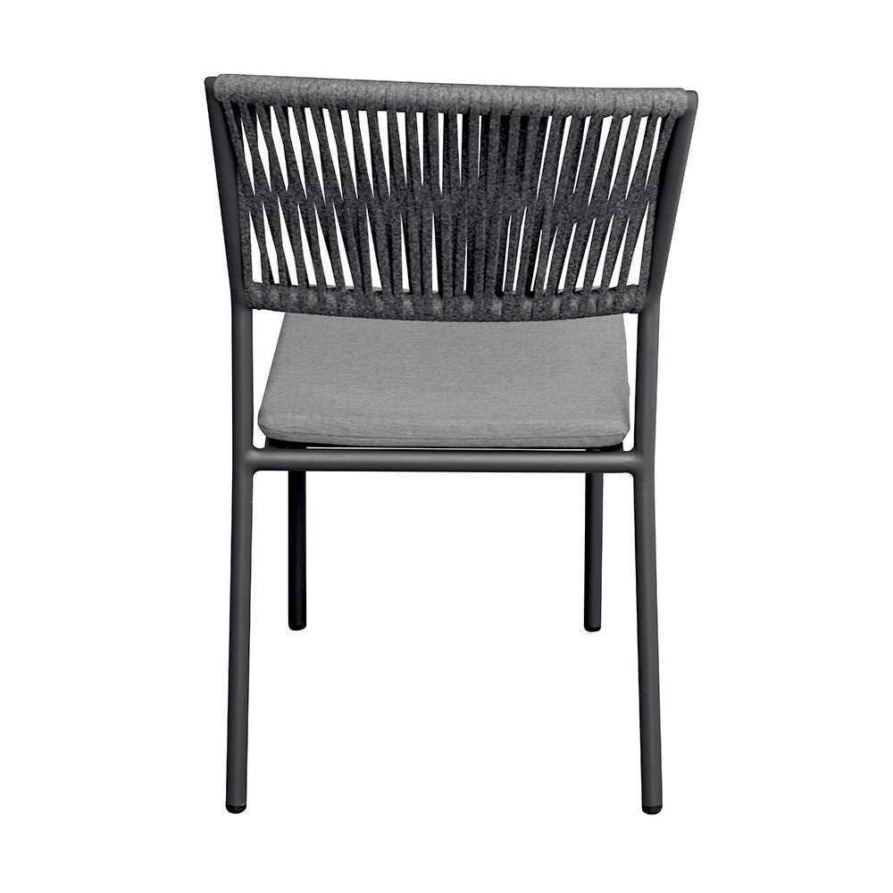 Det utomhusliknande repryggstödet ger en raffinerad, modern touch, vilket garanterar komfort och andningsförmåga, medan aluminiumsitsen med matchande kudde erbjuder mjukhet och komfort, vilket gör varje ögonblick av avkoppling ännu mer njutbar.