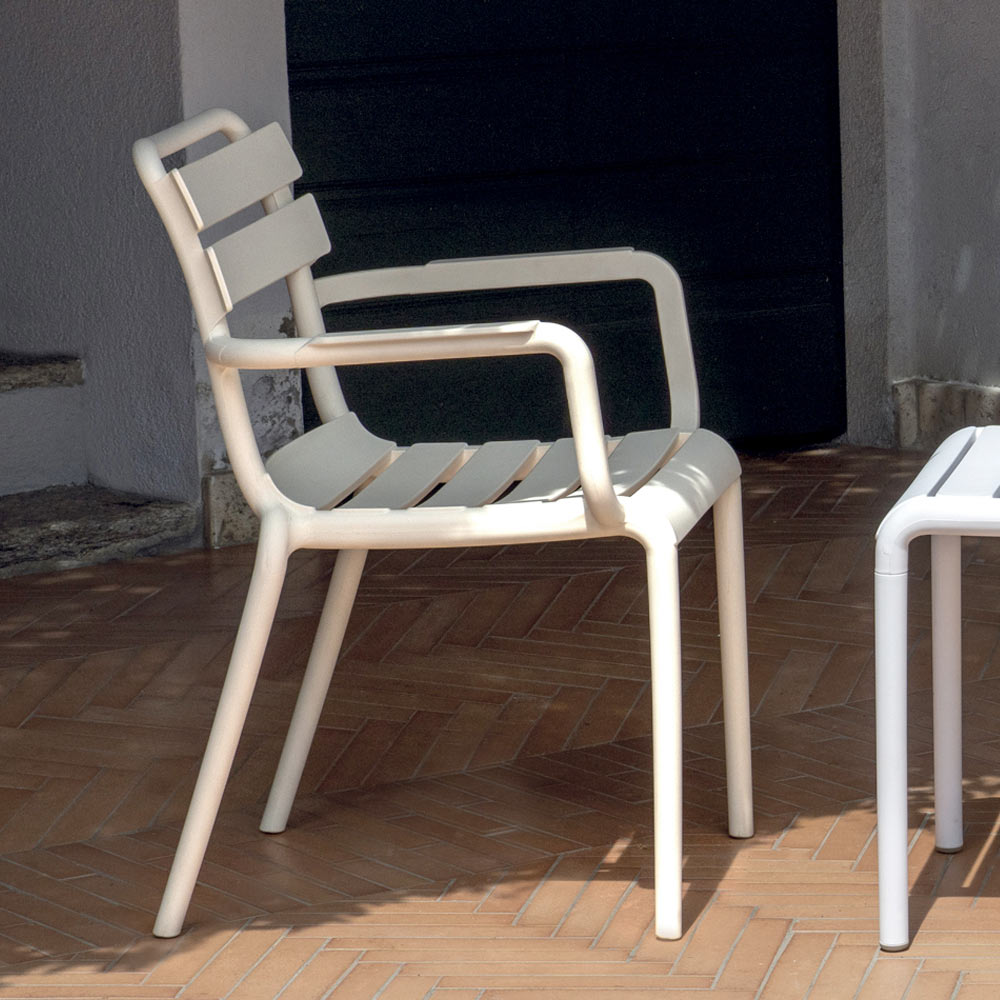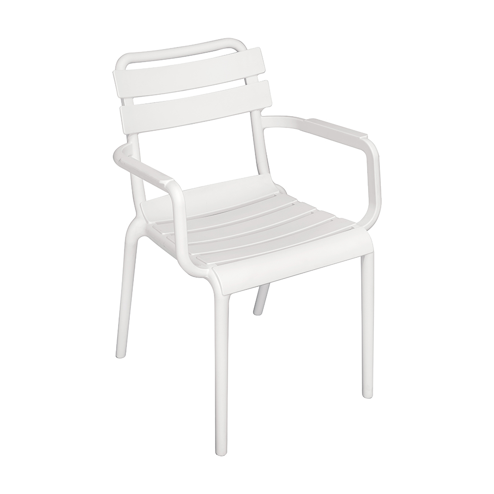 Materialet är UV-beständigt , vilket garanterar livfulla färger och oförändrade ytor även efter långvarig exponering i solen. Med en modern, linjär design anpassar sig denna stol enkelt till en mängd olika miljöer – från trädgårdar till terrasser, till enkla utrymmen som bistroer och hotell.