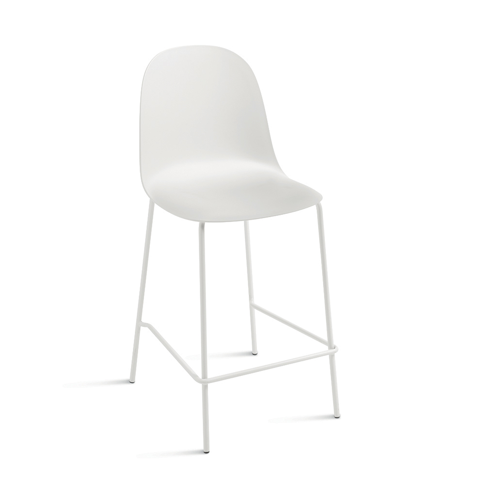Praktisk uppsättning med fyra moderna pallar med enkel design, perfekt för att elegant inreda köket , en snackbar eller en halvö . Polypropensitsen garanterar styrka, lätthet och enkel rengöring, medan den målade metallramen säkerställer stabilitet och hållbarhet.