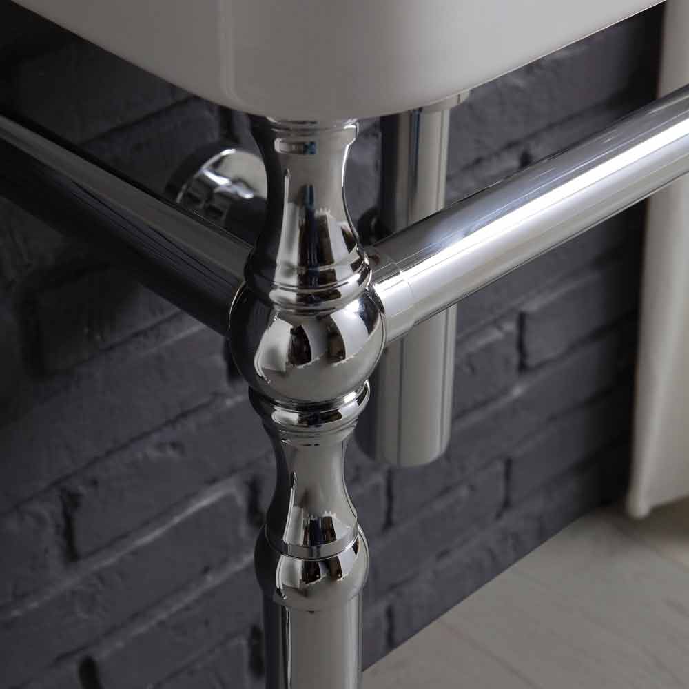 Delar som ingår i kompositionen: - Tvättställ cm. L. 50 cm x D. 40,5 cm - Metallfot i krom Bredd. 41 cm x Väggutsprång 34 cm x H: 76 cm - Väggkran i krom - Kromavlopp - Chrome sifon - Krom fristående handduksstång, toalettrullehållare och krom keramisk toalettborsthållare. - Spegel med antik ram av trä i briccola 55x75 cm