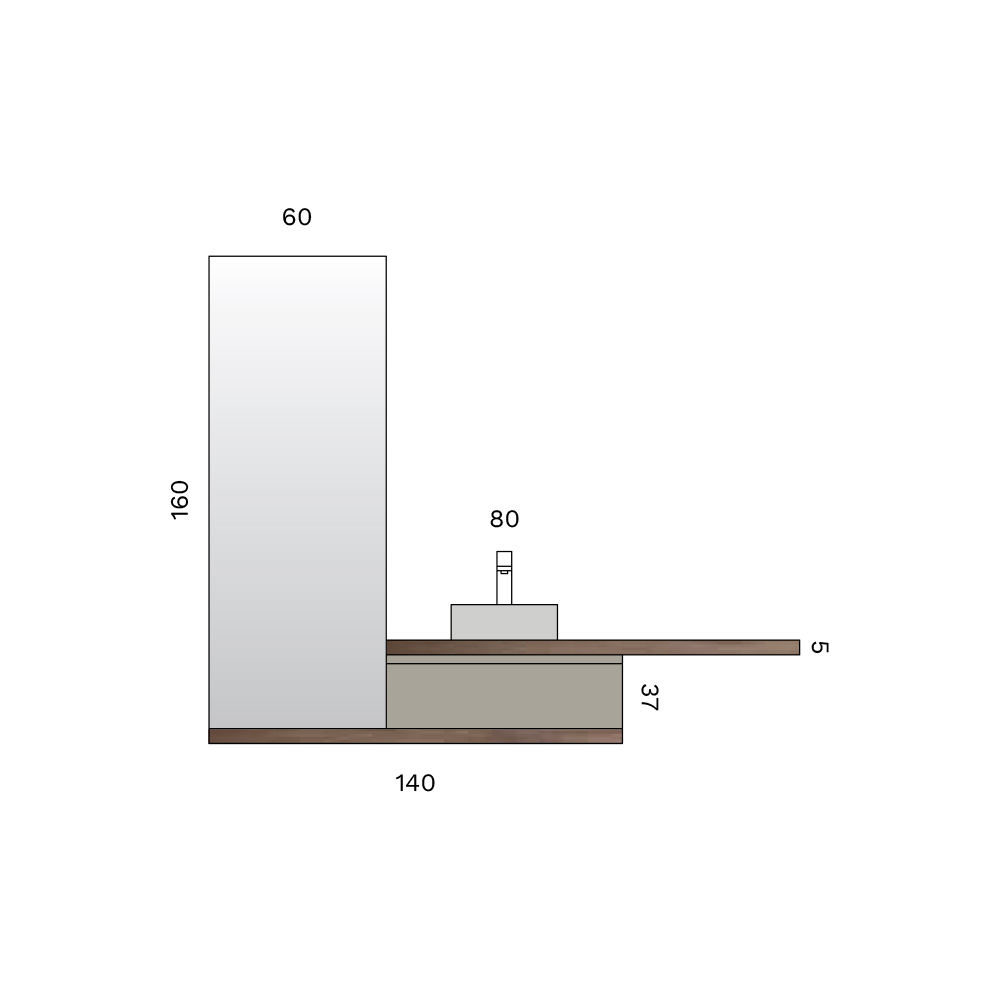 Spegeln på 160x60 förstärker rummets ljusstyrka, medan LED-lampan med kromfinish säkerställer exakt och elegant belysning, perfekt för diskbänksområdet.