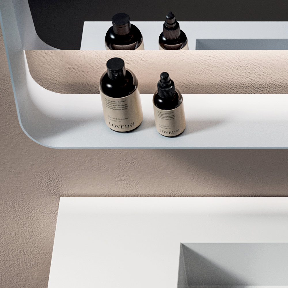 Ett designförslag på badrumsmöbler designat för dig som önskar en elegant, modern och mycket funktionell stil, med utvalda material och noggrann uppmärksamhet på detaljer.