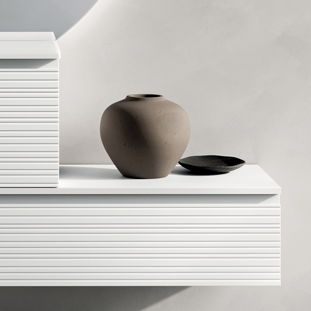 Elegant badrumskomposition med enkel och modern design, utformad för att förbättra moderna utrymmen med en ljus och raffinerad stil.
