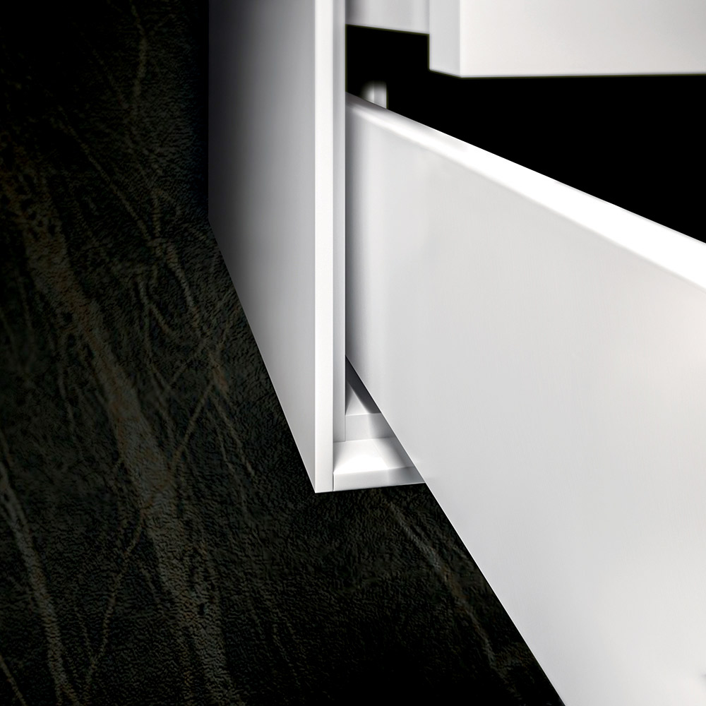Finisher och material går samman för att skapa en elegant, kvalitativ och funktionell badrumsmöbel.
