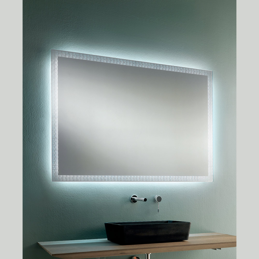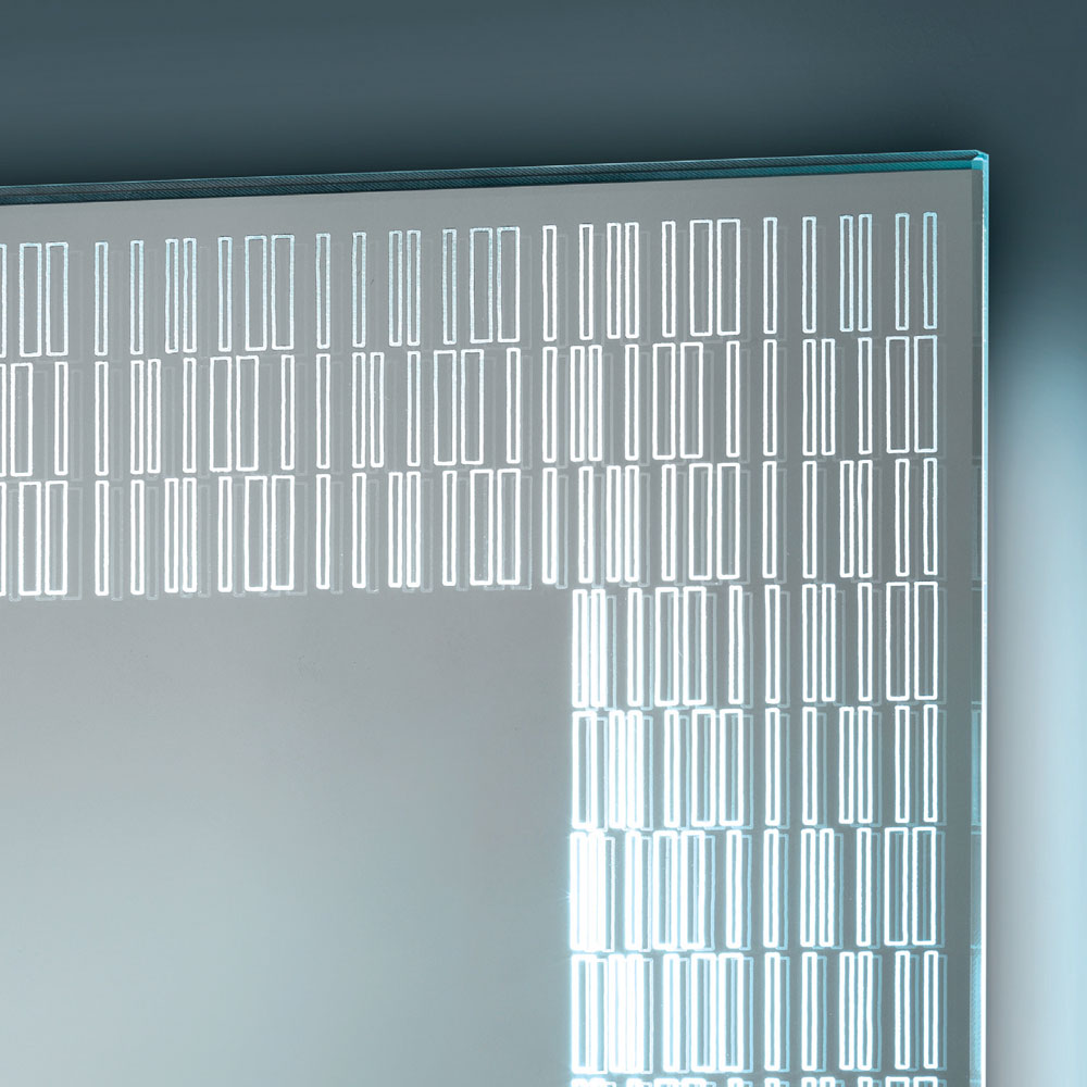 LED-bakgrundsbelysningen avger ett varmt och välkomnande ljus, vilket skapar en atmosfär av lugn och komfort. Detta ljus förstärker inte bara spegelns funktionalitet utan lägger också till en designdimension som kan förvandla alla rum, från ett modernt badrum till en elegant entré, till ett mer öppet och inbjudande utrymme.