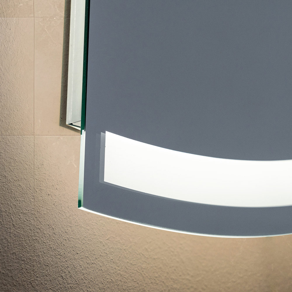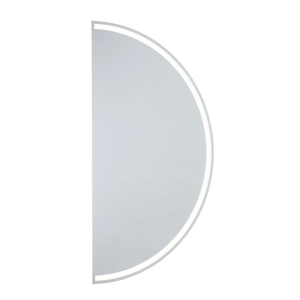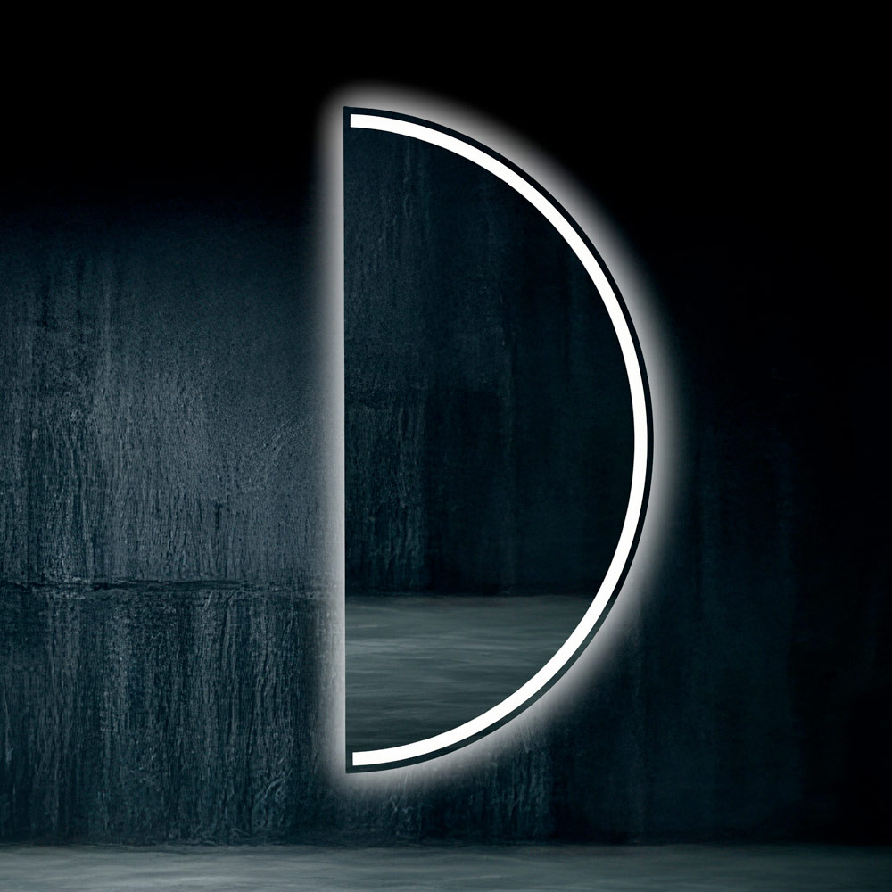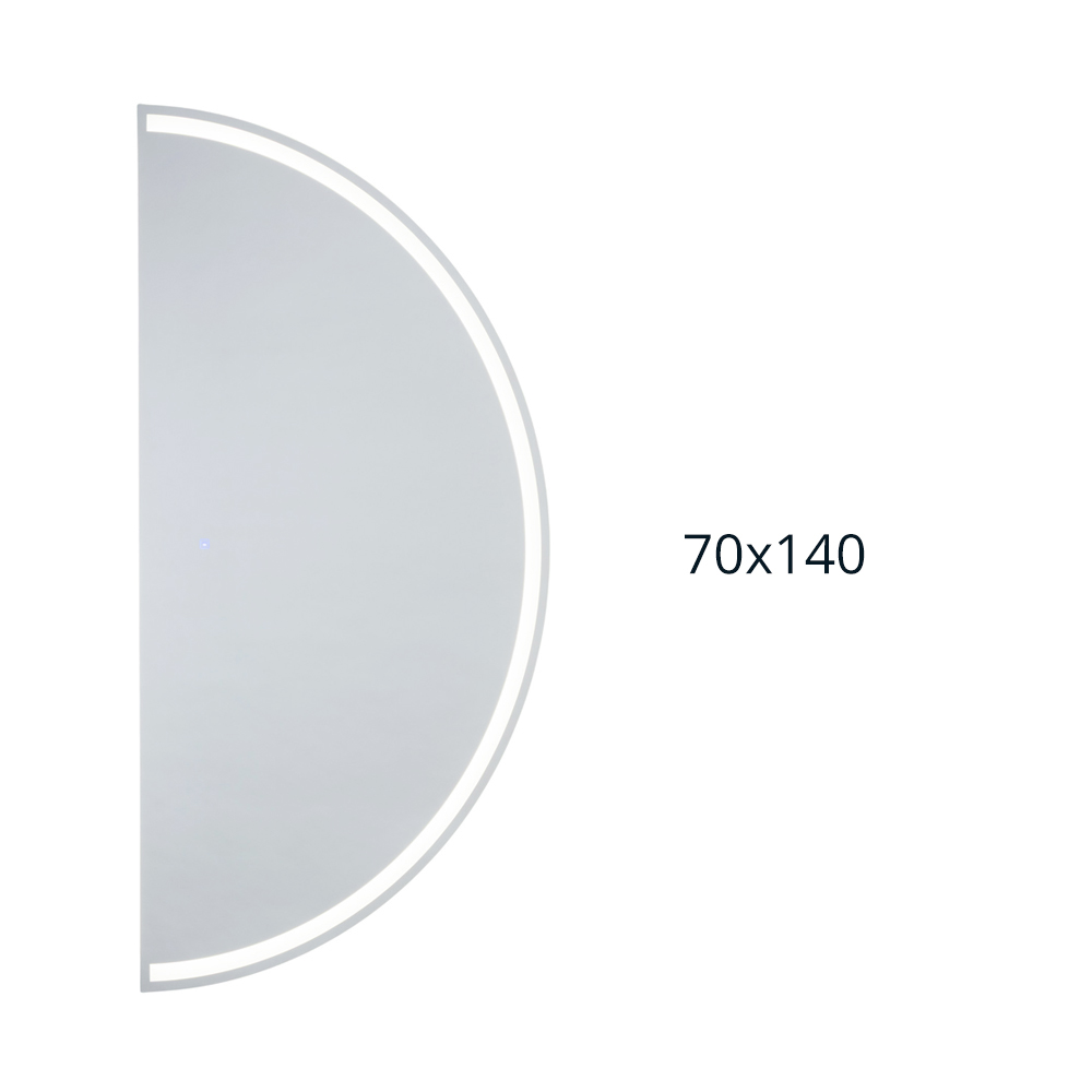 En inredningsaccessoar som överskrider sin enkla reflekterande funktion och förvandlas till ett verkligt designelement . Denna badrumsspegel, med en minimalistisk halvcirkelform och en raffinerad integrerad LED- ljusram, är utformad för att berika rummet med en dramatisk och modern touch.
