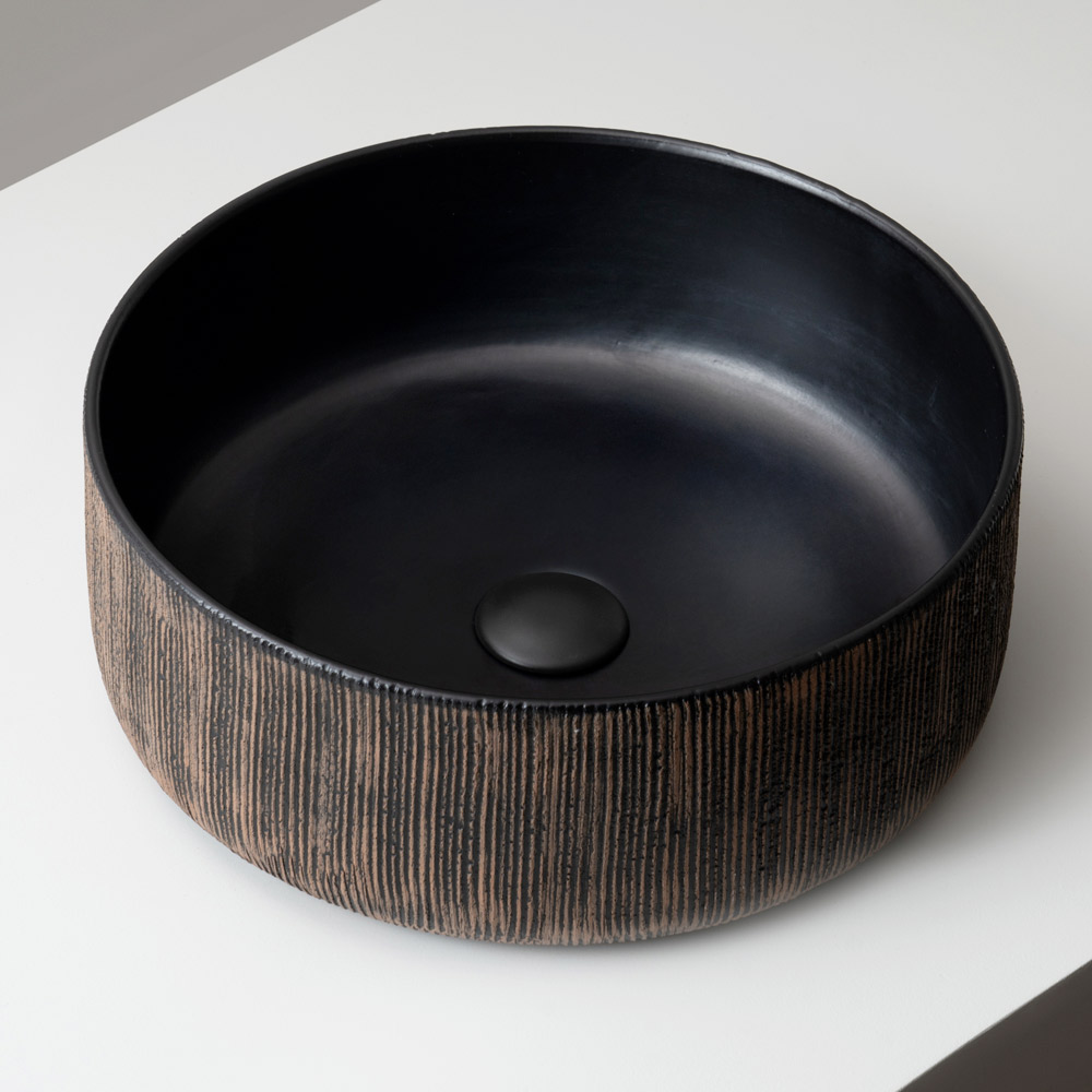Perfekt för badrum med en modern, naturlig eller wabi-sabi-karaktär, blir detta handfat ett verkligt dekorativt element som kan förvandla kommodbänkskivan till en blickfångare i rummet.