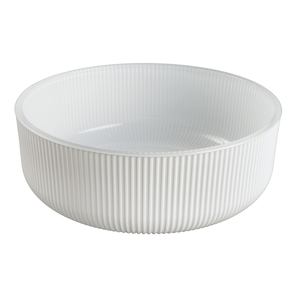 Detta venetianska handfat i glas, som blir badrummets huvudperson, kombinerar hantverksskicklighet med den estetiska förfining som är typisk för Made in Italy . Tillverkat av hartsbelagt och målat glas med fina ytbehandlingar, utmärker det sig med sin yta med ett elegant randigt mönster som skapar unika ljus- och reflektionsspel.