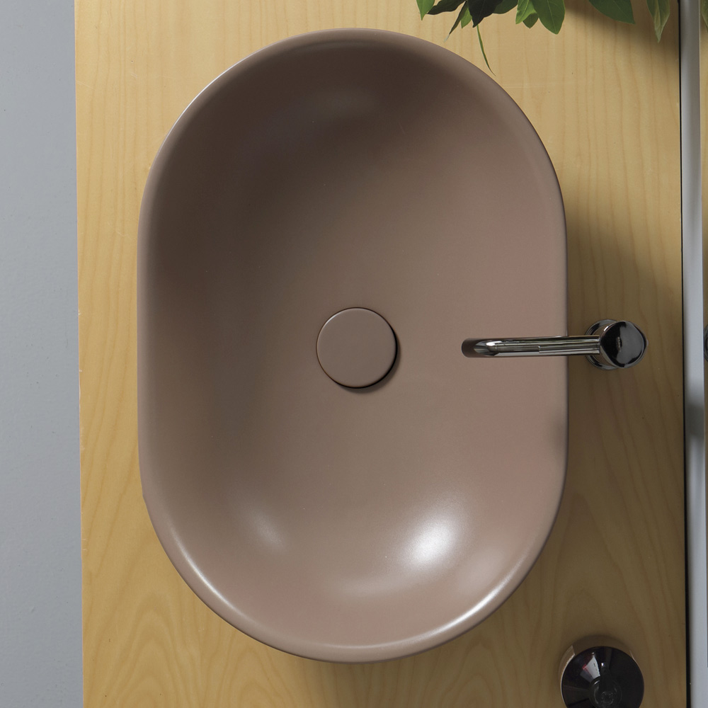 Oval tvättställsbänk av färgad keramik med en matt yta genom en 100% tillverkad i Italien hantverksproduktion . En design med mjuka och harmoniska linjer som kännetecknas av enkelhet och mångsidighet . Faktum är att dess form anpassar sig perfekt till alla moderna stilistiska sammanhang, vilket ger en exklusiv touch som kan fullborda inredningen av badrumsområdet på ett unikt och avantgardistiskt sätt. För att berika handfatets estetik är de underbara färger som föreslås som säkerställer ett förfinat resultat trots en nykter och elegant stil .