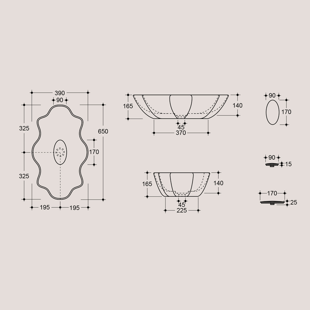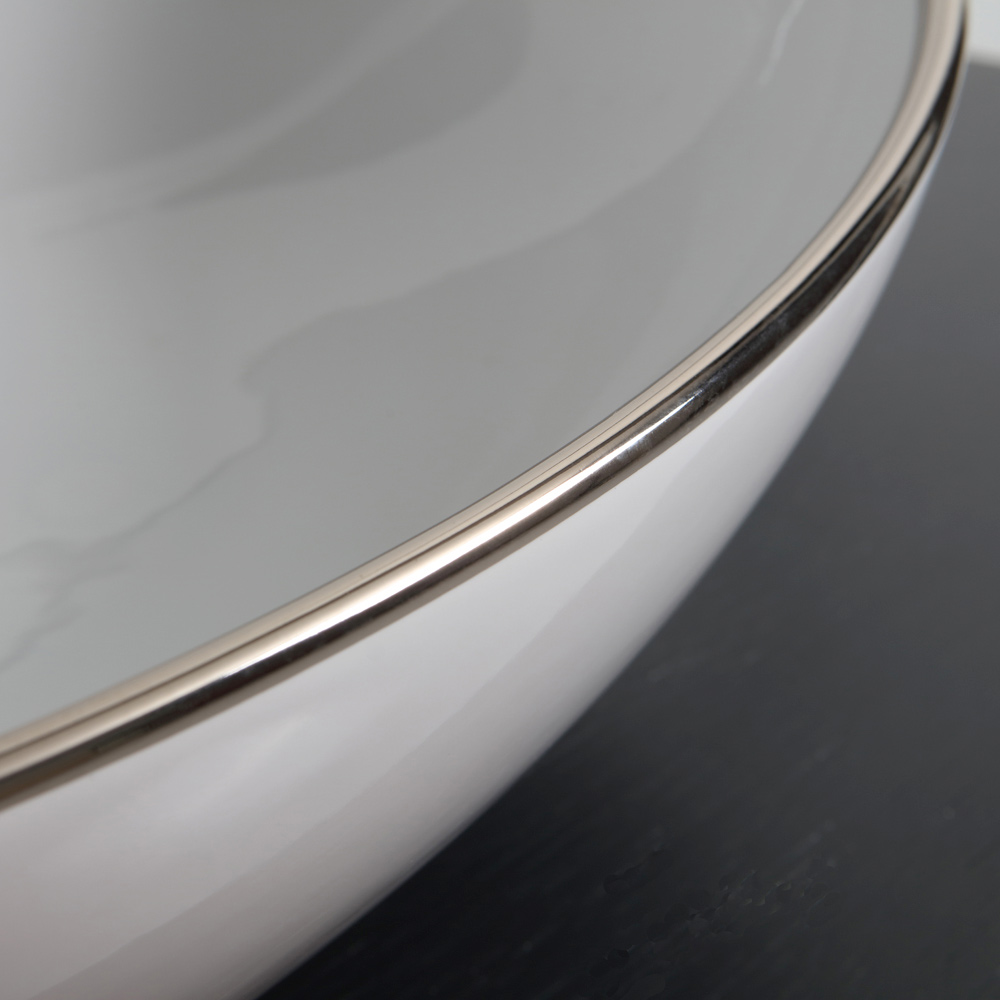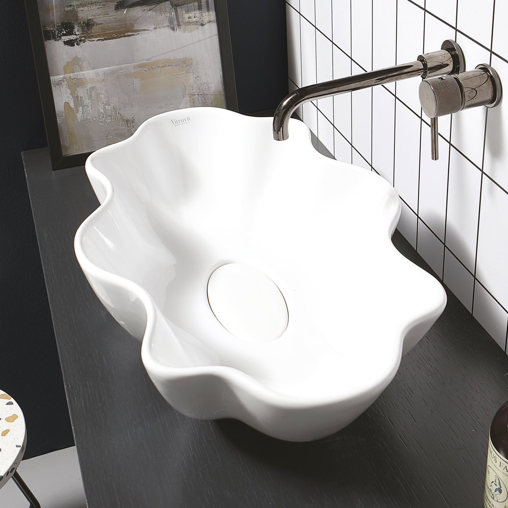 Bänkskiva keramiskt handfat, tillverkat i Italien genom hantverksmässig produktion . En inredningstillbehör för badrumsdelen som kännetecknas av en originell och fängslande stil vars idé kommer från viljan att föreslå inredningslösningar som är avlägsna från klassiska massproducerade produkter. Resultatet är ett tvättställ med exklusiv estetik som väcker uppmärksamhet tack vare sin imponerande moderna personlighet och den speciella formen som påminner om ett skal.