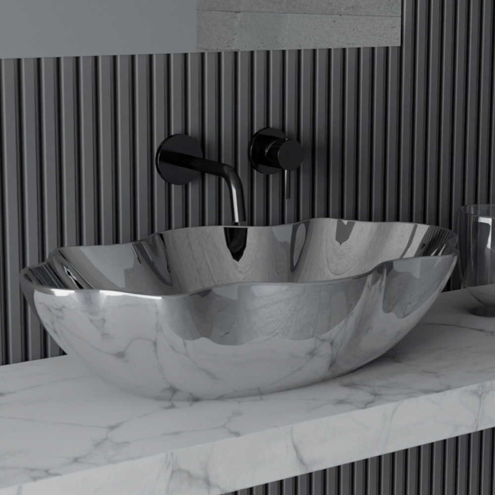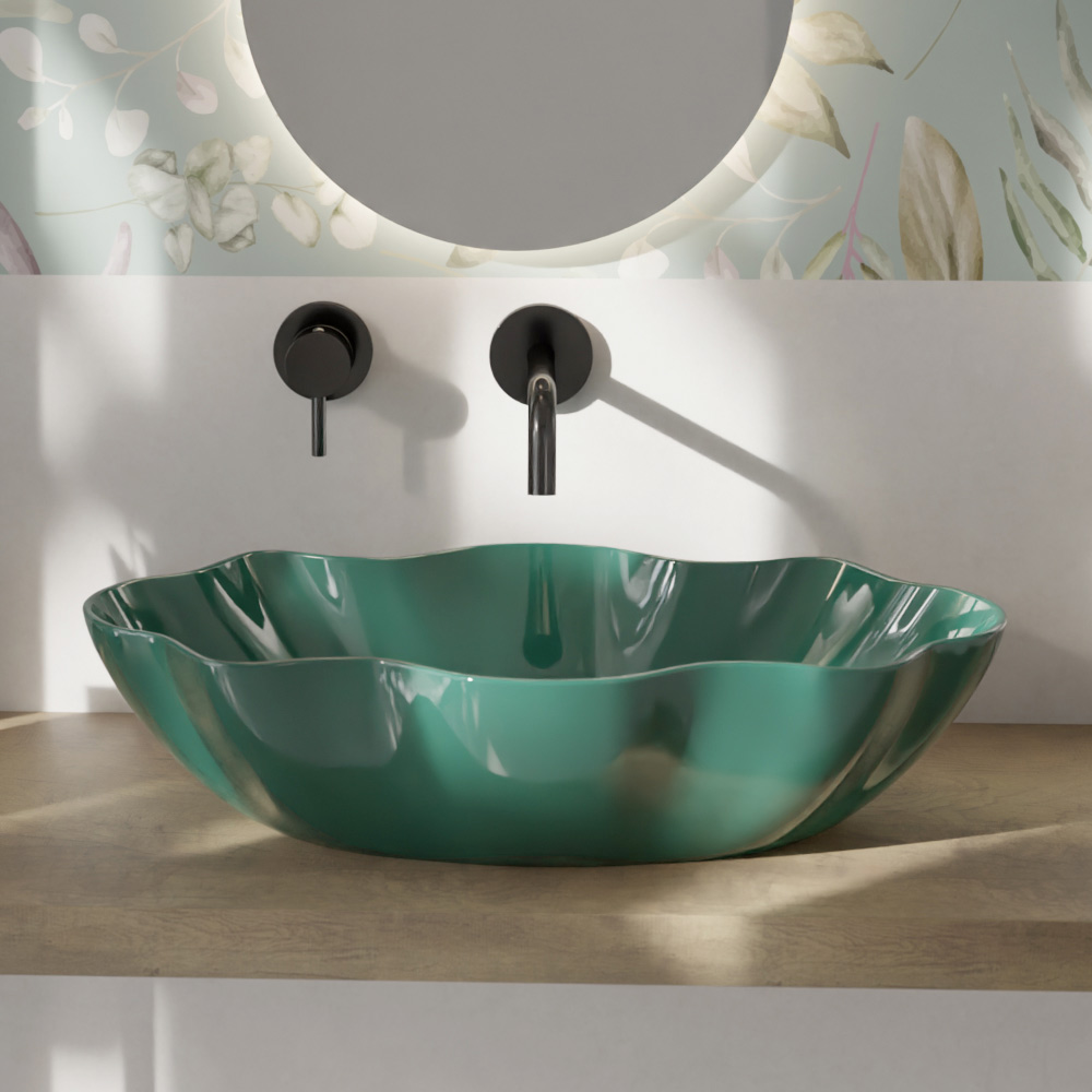 Den kreativa formen representerar dess sanna starka sida och gör den till en lämplig idé för dem som älskar att inreda sina utrymmen med excentriska färgtoner och en stark scenografisk effekt för ett banbrytande badrum.