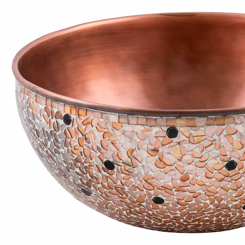 Murello är en cirkulär tvättställ handgjord i koppar med invändig antik koppar och utanför mosaiken.
