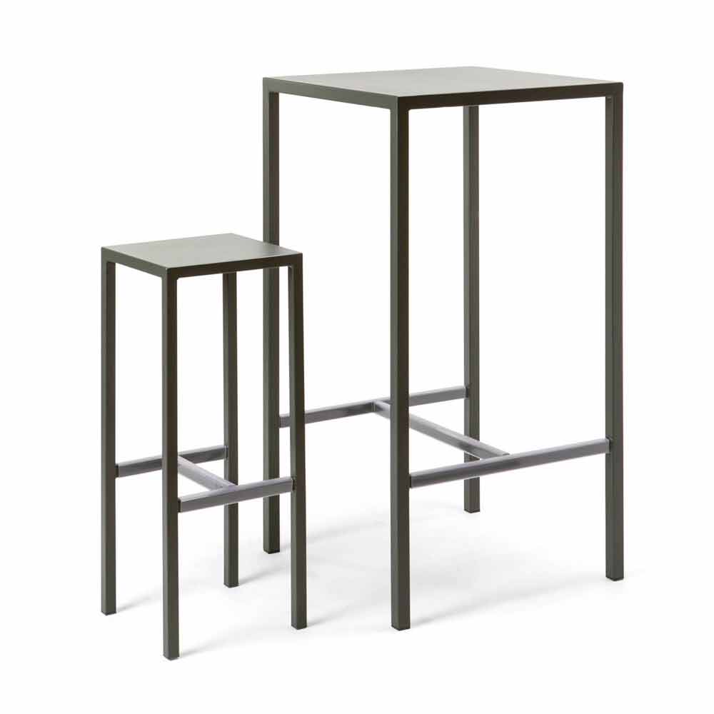 Modernt barbord med 4 pallar helt tillverkat av pulverlackerat galvaniserat järn, tillverkat i Italien.