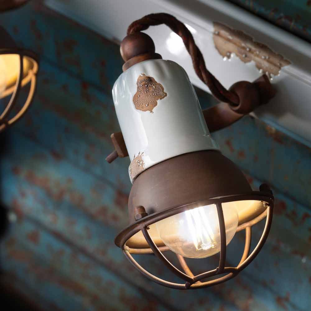 Designapplikation med tre justerbara spotlights i Lacey keramik och metall Lacey är en fantastisk vägglampa, bestående av tre spotlights i linje, med en industriell - vintage stil, handgjord av skickliga hantverkare i Italien. Denna vackra lampa är gjord av antikt järn och blank keramik, tillgänglig i olika färger. Det speciella med denna lampa ligger i keramikens hantverk. Keramiken är faktiskt dekorerad på ett sådant sätt som om tiden hade markerat dess väg. Återgivningen av tidens urholkning i kombination med de blanka ytorna ger det extra värdet till denna vägglampa. Denna slitna effekt ger Lacey en sofistikerad vintage-industriell stil. Metalldelarna är gjorda av antikt järn. För att återskapa denna vintageeffekt av järn, behandlas den enligt vissa procedurer, för att rosta eller oxidera naturligt, för att återskapa denna antika effekt som präglas av tid. En annan egenhet hos Lacey finns i dess förmåga att justera ljusstrålarna i de tre strålkastarna där du vill ha det mest. Strålkastarna har faktiskt sin egen rörlighet som gör att du kan rikta ljuset. Riktningsljus, keramik med vintagefinish i perfekt harmoni med oxiderad metall: en unik applikation i sin stil, med en antik smak, perfekt för de mest raffinerade miljöerna. Ljusa färger, blanka ytor och raffinerade tecken på åldring för en aktuell profil i skepnad av en tidigare stil. Lacey skapar rent, oskärmat ljus. Det är dessa enkla och ömtåliga former som drar till sig uppmärksamhet, och som gör att Lacey kan anpassa sig till vilken inredning som helst från den enklaste och mest minimala, till den mest klassiska, vilket skapar en delikat kontrast. Intim atmosfär och mjukt ljus: denna vägglampa full av personlighet och oefterhärmliga detaljer är det perfekta inredningstillbehöret för ditt loft. Små detaljer för en fantastisk effekt med en antik smak! Lacey finns i två olika varianter: komplett eller utan metallgaller, det vill säga antikt järn, av en design som berikar de tre diffusorerna, för att öka deras industriella effekt. Ta med en touch av design i ditt hem också och välj den lampa som passar dig bäst!
