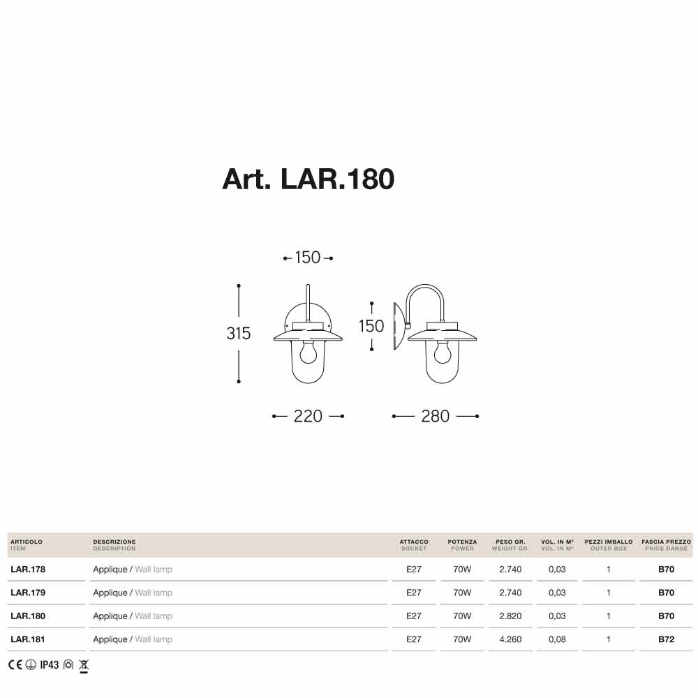 Klassisk vägglampa La Traviata av Aldo Bernardi, tillverkad av antik koppar, mässing och glas.