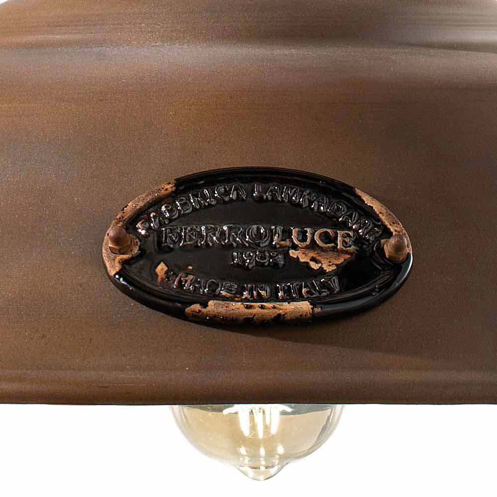 Denna vackra lampa består av en stor diffusor gjord av antikmetall, speciellt i järn i corten - rost finish.
