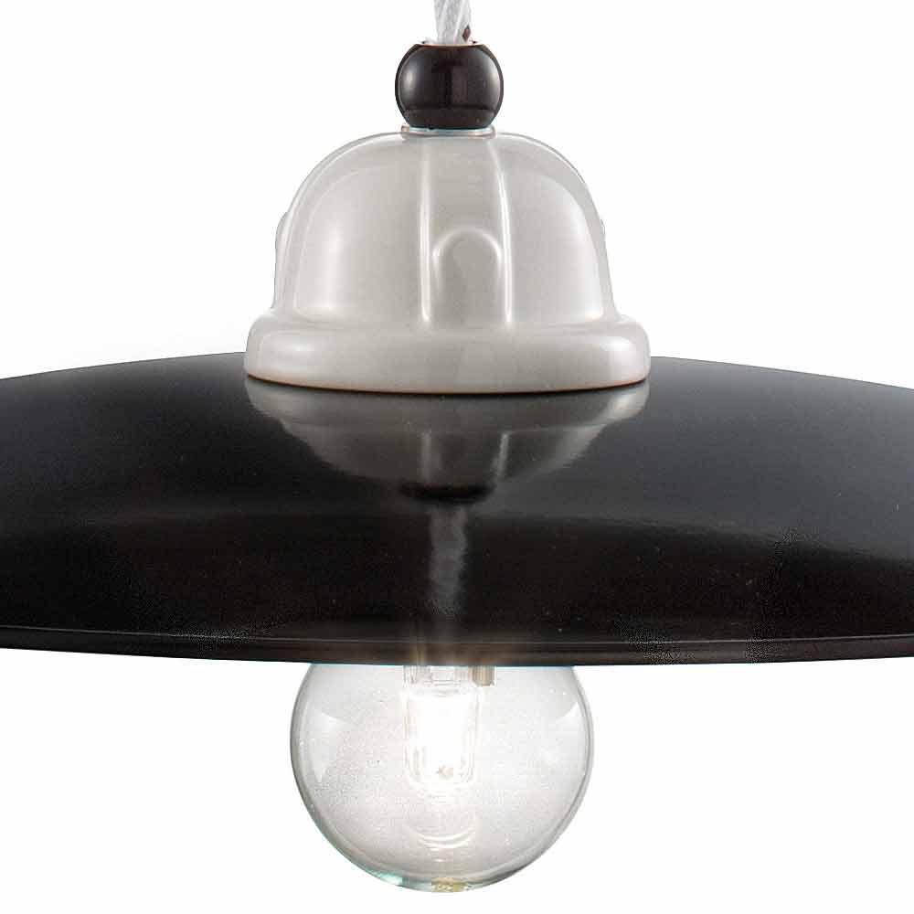 Lampa gjord av blank svart keramik, vad gäller diffusorns yttre finish, medan struktur, ram och tråd har en blank vit finish. Melissa finns i olika storlekar.
