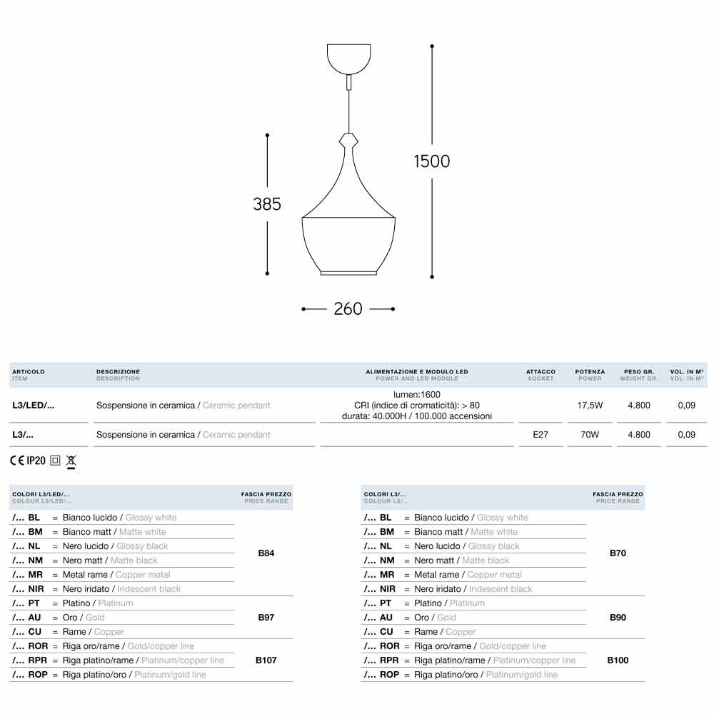 I Lustri 3 finns med olika ytbehandlingar och med uttag för standardlampa E27 eller LED-lampa.