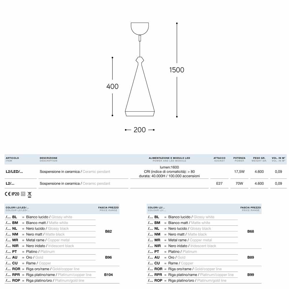 I Lustri finns med olika ytbehandlingar och med uttag för standardlampa E27 eller med LED-lampa.