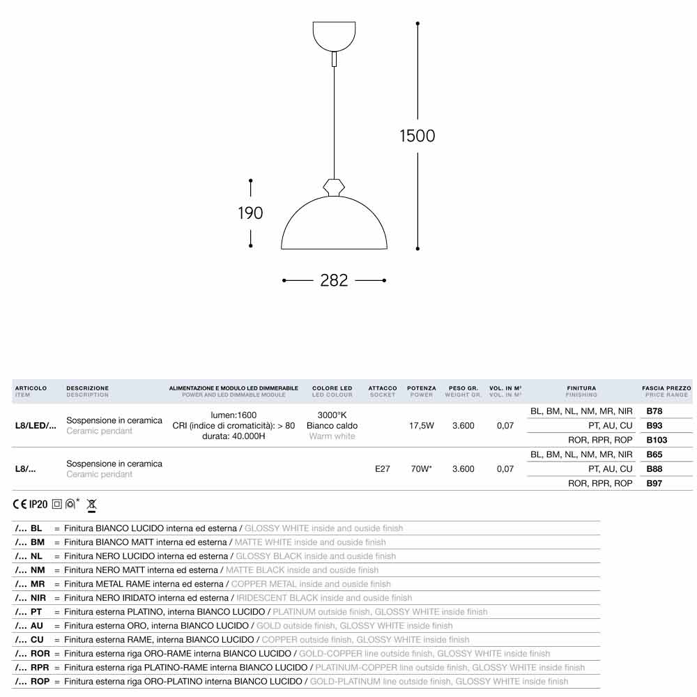 I Lustri 8 finns med olika ytbehandlingar och med standard E27-lampauttag eller LED-lampa.