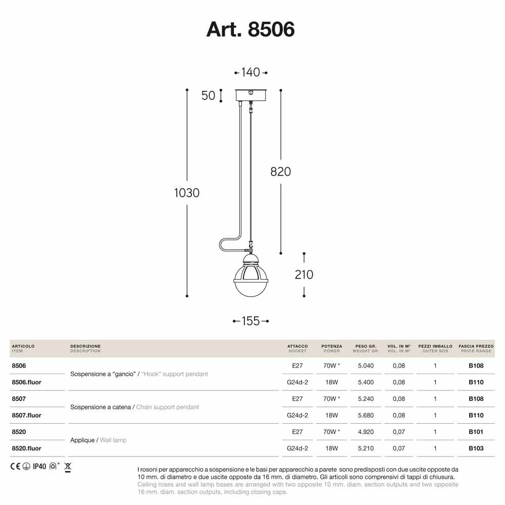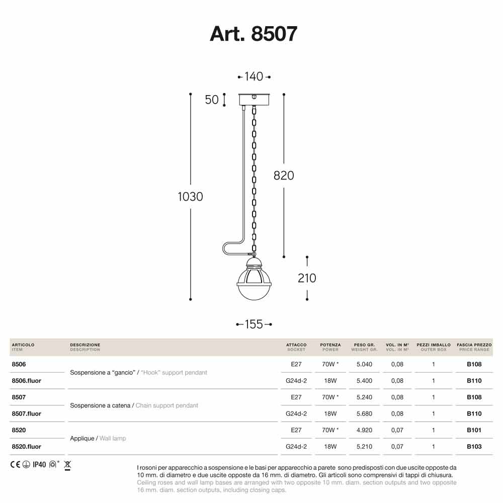 Cimosa finns med krok- eller kedjestöd och med olika uttag: