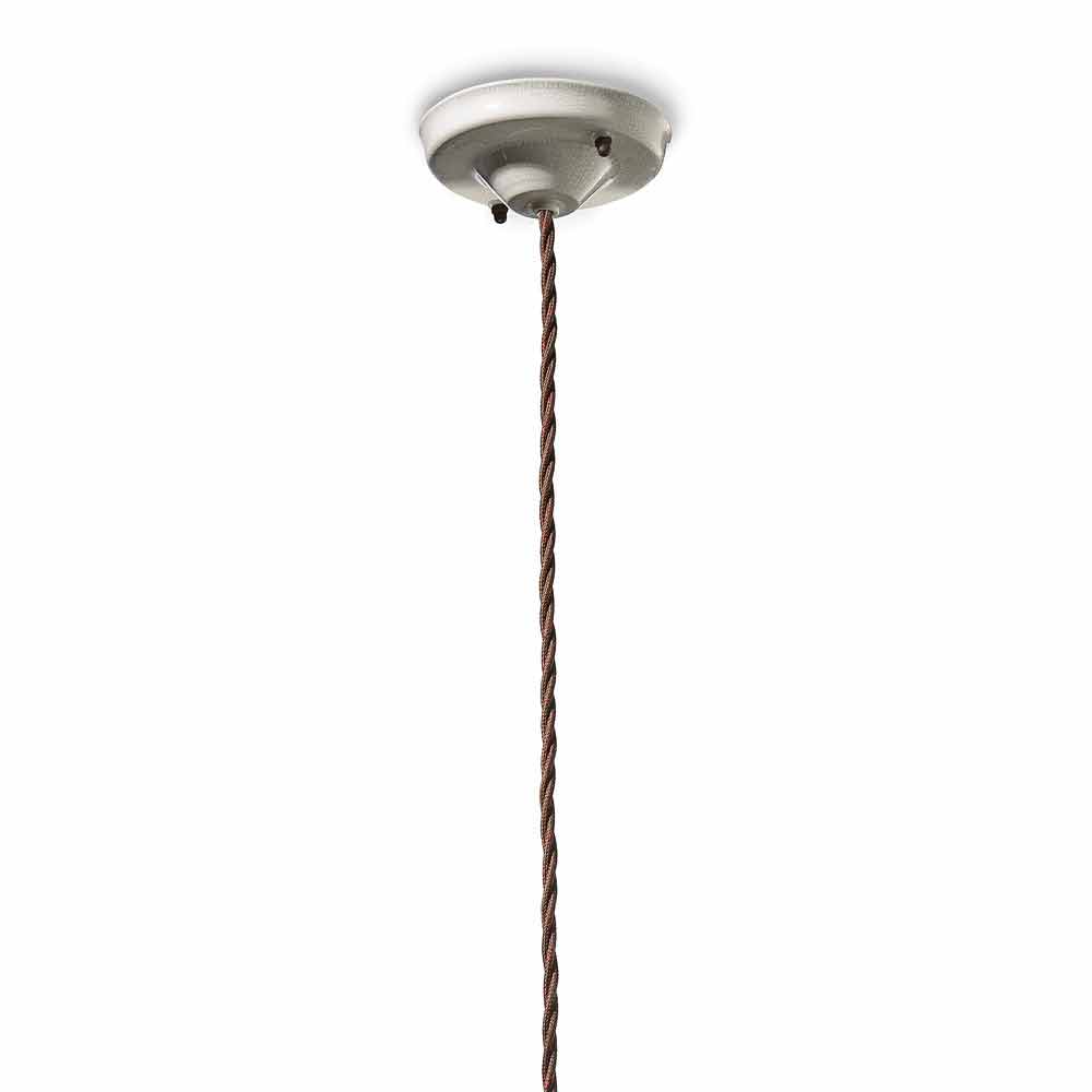Denna vackra upphängning består av en metallkrona, i en matt rostfinish, stödd av en flätad kabel som kompletterar sin industriella stil, medan de keramiska delarna som utgör den är bearbetade med craquelédetaljer, för att fullborda en balans mellan fullt och tomt. . Det är just dessa material som ger Janice denna roll att minnas det förflutna.