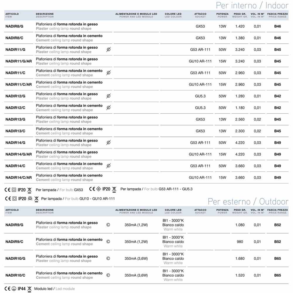 Taklampa Nadir 12 av modern design av Aldo Bernardi , tillgänglig i betong- eller gipsversion.