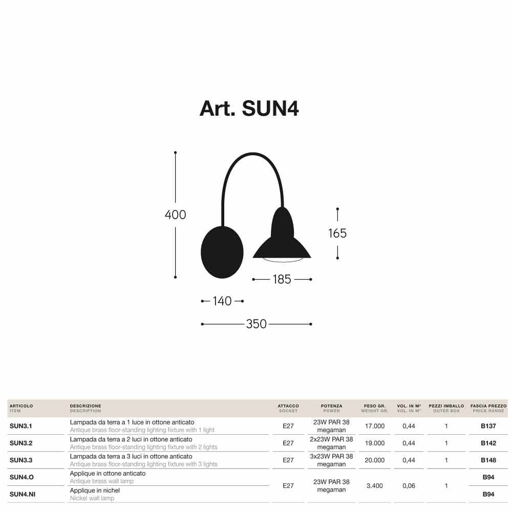 Applique Brass nickel yta Jasmin extern Aldo Bernardi