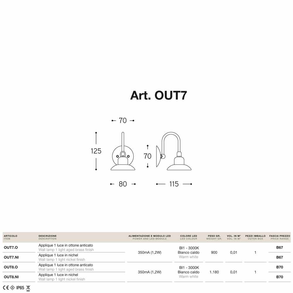 Utomhusdesign vägglampa Giulietta Sprint - Small av Aldo Bernardi, tillverkad av koppar och mässing.