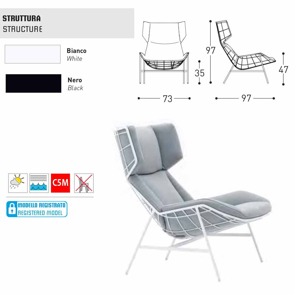 Sommaruppsättning är en förtrollande bergare relaxarbetsstol, kännetecknad av en stödstruktur i pulverlackerat stål med ett urval av vita eller svarta färger. Sitt- och ryggkudde i tyget och vadderat med Dryfeel-gummi.
