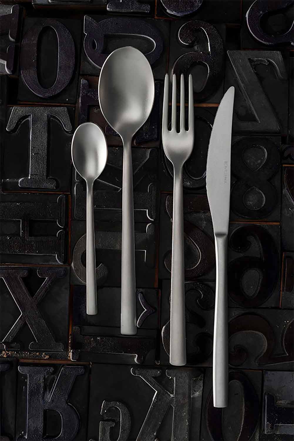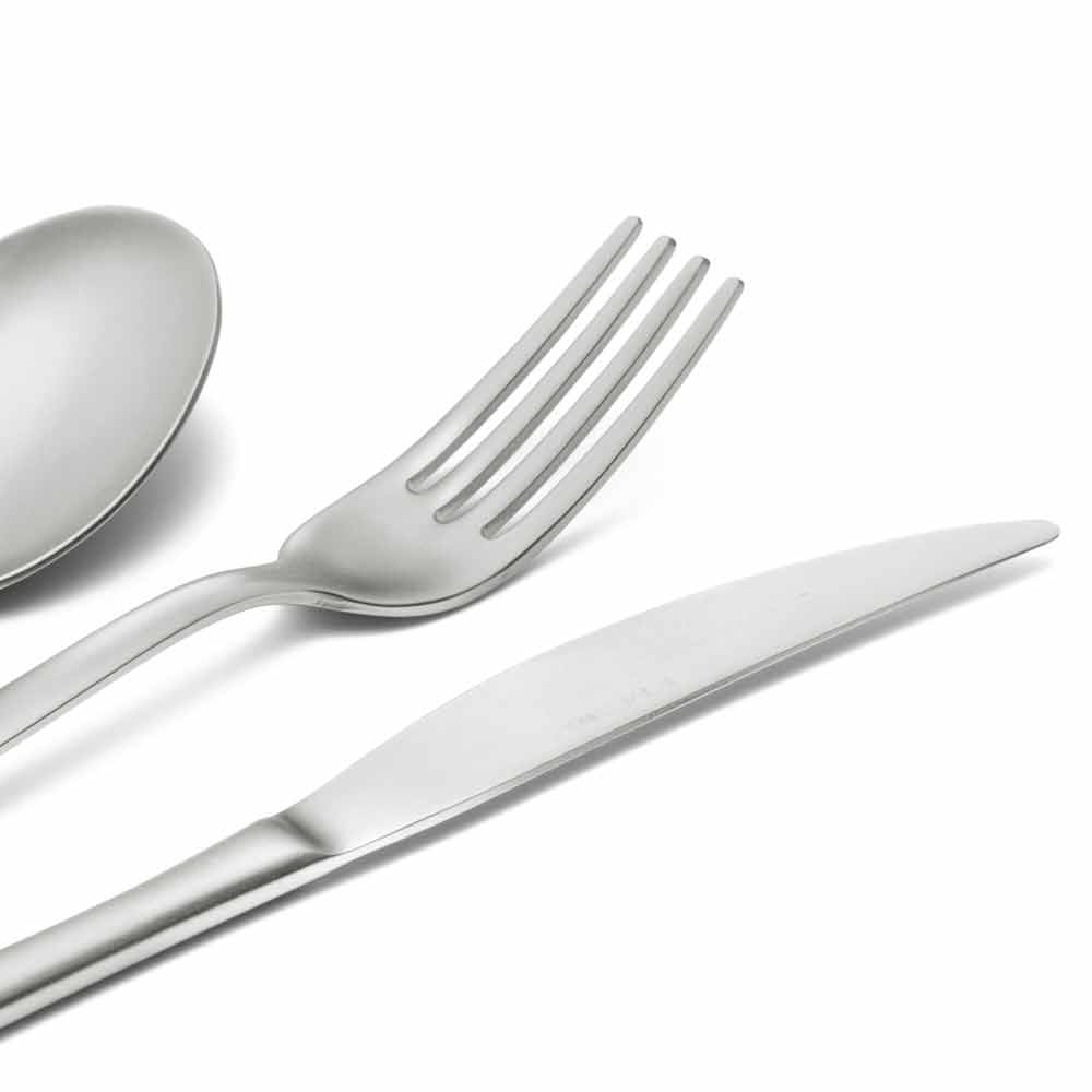 Komplett bestick i sandblästrat rostfritt stål, 24 stycken tillverkade i Italien design.