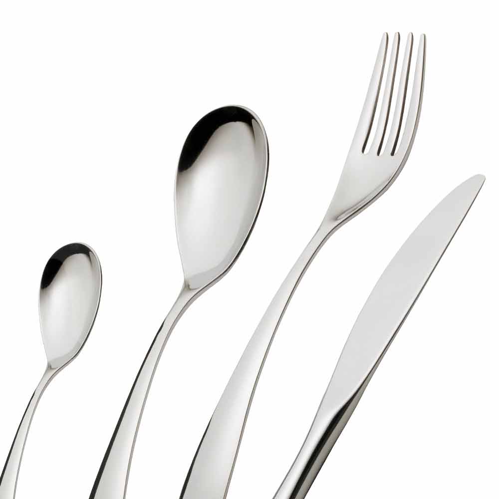 rundade och lutande linjer , som har accentuerade och speciella krökningar i handtaget, särskilt gafflar och skedar, som skapar